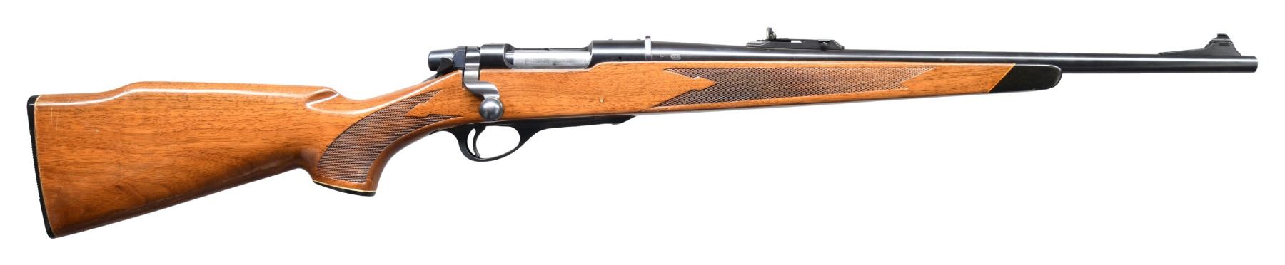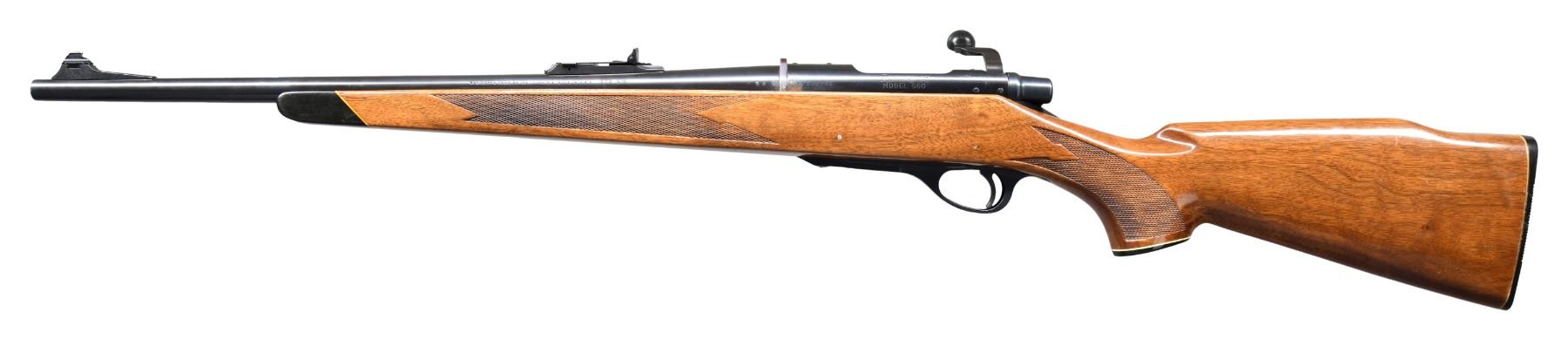 Cal. 308 Win. S# 122741. Bbl. 20". Ramped bead front sight. Adjustable rear sight. Blued finish with black plastic trigger guard. Ebony tipped checkered hardwood pistol grip stock. UNATTACHED ACCESSORIES: .30 Cal. Bore Snake. CONDITION: stock has added varnish with some scattered moderate flaking & handling marks. Metal retains 95-97% blue with some edge wear, a spot of oxidation on right side of receiver & a small cleaned patch of pitting ahead of the oxidation spot. Action functions properly when hand cycled. Bright near excellent bore. (24-2770/MJC). CURIO. $450-650.