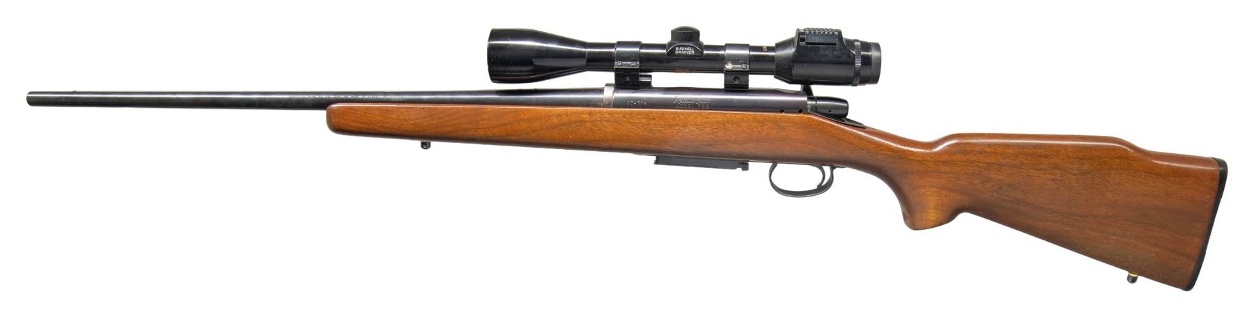 Cal. 30-30. S# 034594. Barrel 22" w/ plug screws; code "DP" indicates Aug. 1967 mfg. (first year of mfg.). Bushnell Banner Lite-site, duplex scope on Weaver rings & bases. Walnut Monte Carlo stock. MAGS: 1 - 3 rd. CONDITION: very good reblued metal finish. Very good lightly refinished wood w/ crack on right side extending from bolt channel. Good rifling with light pitting. Scope has very good finish & serviceable optics. (25-4821/MD). CURIO. $500-750.