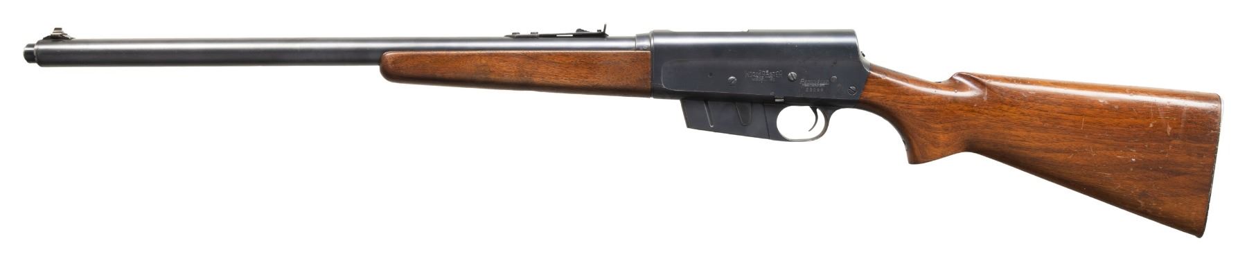 Cal. 300 Sav. S# 29068. Bbl. 23"; bbl. code "WRR" appears to indicate Aug. 1946 mfg. Barrel jacket has blade front sight & elevator rear sight. Action has replacement unmarked extractor & screw for receiver sight. Walnut stock set w/ checkered alloy buttplate. CONDITION: very good blue with handling marks & pinprick patina. Good wood finish with numerous handling marks & spots of peeling finish. Very good rifling. (25-6603/MD). CURIO. $400-600.