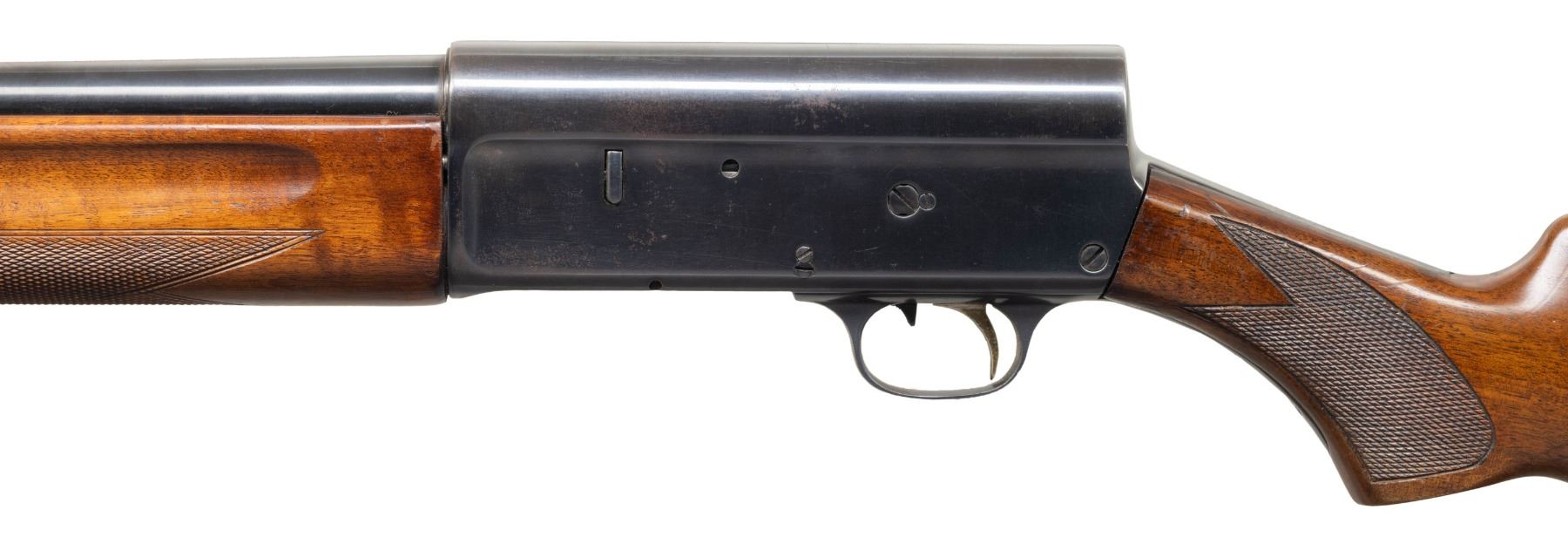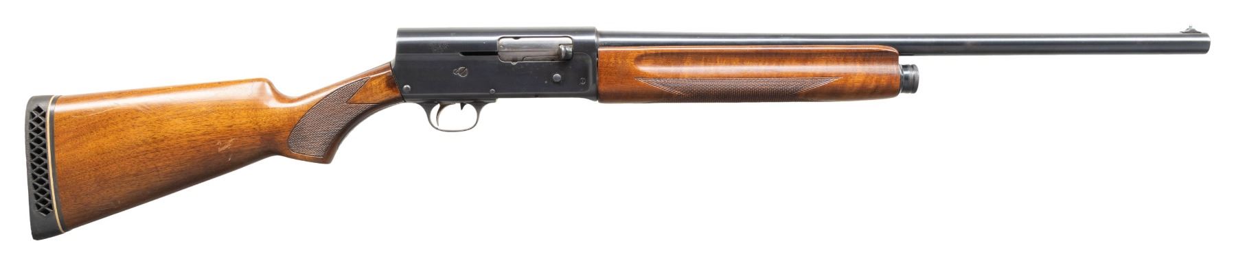 Cal. 12 Ga., 2 3/4". S# 245389. Bbl. cut to 23.5" w/ steel bead & cyl. bore. Walnut stock set w/ replacement Pachmayr pad. CONDITION: very good reblued finish. Good sanded, refinished & re-checkered wood w/ handling marks. Shiny bore with fouling. (25-4300/MD). MODERN. $200-400.