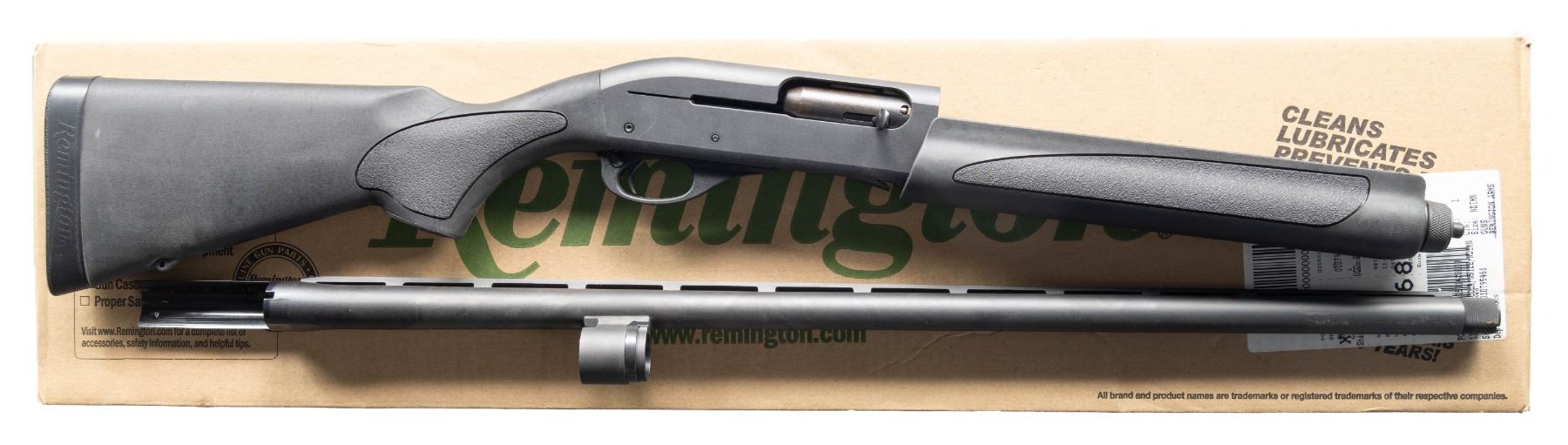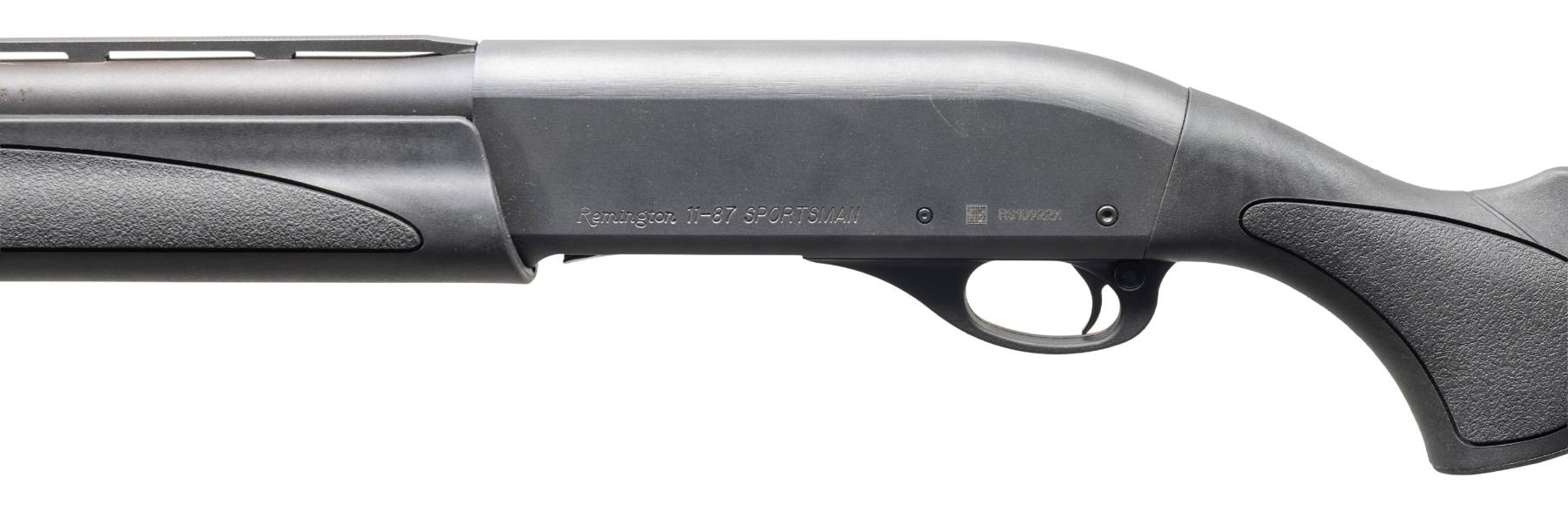 1) 11-87 SPORTSMAN SEMI AUTO SHOTGUN. Cal. 12 Ga. 3". S# RS10922X. Bbl. 28" with VR & Close Range choke. Silver bead front sight. Matte gray finish. Black synthetic pistol grip stock set with bottom mounted sling studs & factory recoil pad. LOP: 13 3/4". UNATTACHED ACCESSORIES: matching numbered factory box that shows some tears with choke wrench & trigger lock. CONDITION: stock set shows light handling wear. Metal retains most of its matte gray finish with a couple patches of edge wear on bbl. Action functions properly when hand cycled. Bright very good bore. (24-2731/MJC).