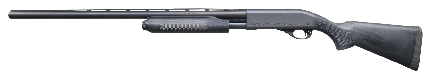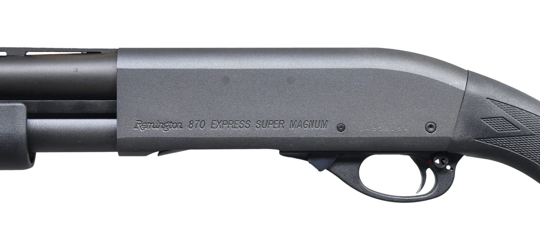 2) 870 EXPRESS SUPER MAGNUM PUMP SHOTGUN. Cal. 12 ga. 2 3/4, 3 & 3 1/2". S# D495818A. Bbl. 28" vent rib w/ steel bead & Rem chokes, Mod tube included. Matte black finish. Synthetic stocks w/ black Remington pad. CONDITION: over 98% finish. Very good bright bore. (24-3507/DS). MODERN. $600-800.