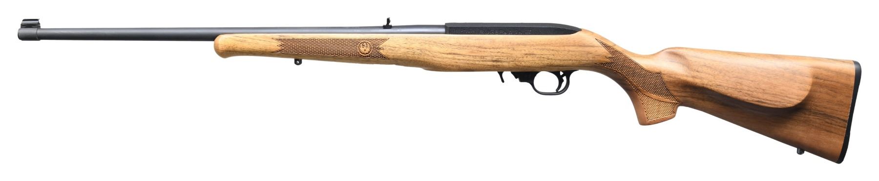 2) 10/22 FRENCH WALNUT. Cal. 22 LR. S# 353-75116. Bbl. 20". Gold bead front sight. Flip-up rear sight. Receiver factory drilled & tapped for scope mounting. Ruger catalog #10/22RB-CIII & model 01221 Talo French Walnut 10/22 made in 2009. Blued & anodized finishes. French walnut pistol grip stock with left side cheekpiece & bottom mounted sling studs. MAGS: 1-10 rd. UNATTACHED ACCESSORIES: matching numbered factory box with manual, paperwork, scope mount & trigger lock. CONDITION: all aspects near excellent. (24-3747/MJC). ALL MODERN. $500-7500.