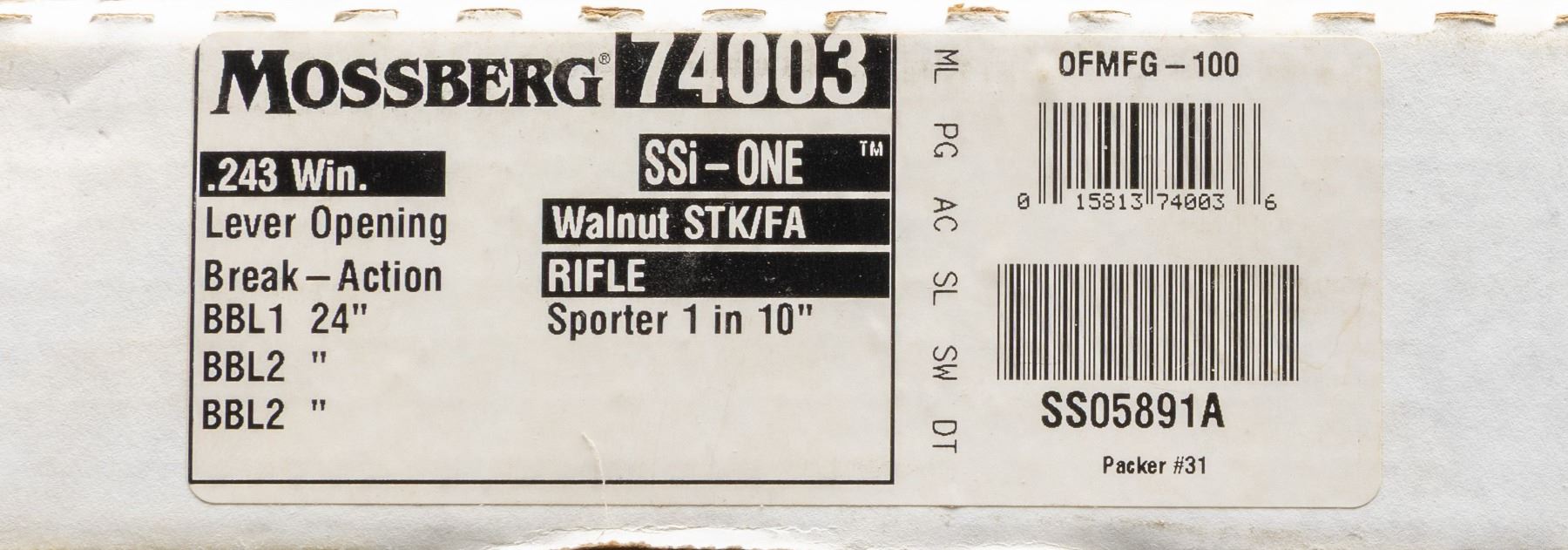 Lot 2249 MOSSBERG SSI-1 SNGLE SHOT RIFLE.
