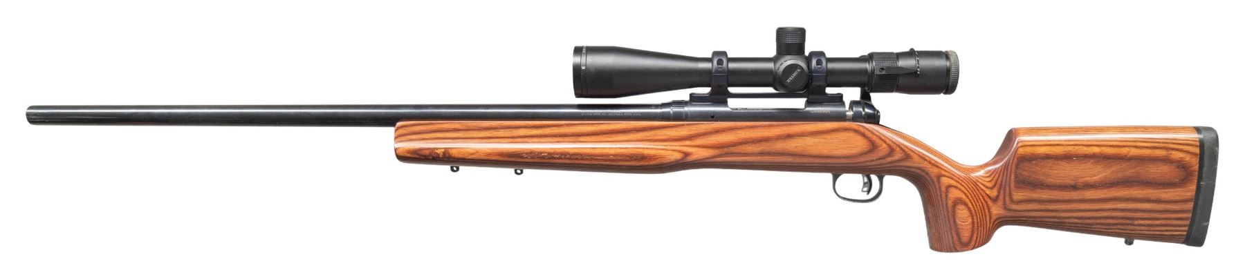 Cal. 223 Rem. S# G994981. Bbl. 26" heavy profile. Rifle is sighted with a Vortex Viper 6.5-20x44 scope. Scope has duplex crosshair reticle, very good optics & bikini cover with rear half missing its lens. Accu-Trigger. Blued finish. Laminated stock with bottom mounted sling studs & Pachmayr Decelerator recoil pad. LOP: 13 1/2". CONDITION: stock shows scattered light handling marks. Metal retains 98% original blue with some light handling marks mostly on trigger guard. Action functions properly when hand cycled. Bright near excellent bore. (25-4837/MJC). MODERN. $400-600.