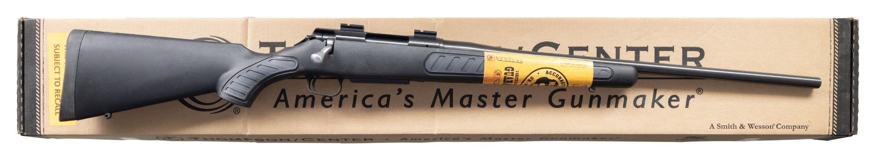 1) TC VENTURE BOLT ACTION RIFLE. Cal. 30 TC. S# U042284. Bbl. 22". Receiver has Weaver style scope bases. Blued finish. Black synthetic pistol grip stock with bottom mounted sling studs & factory recoil pad. LOP: 13 1/4". MAGS: 1-3 rd. UNATTACHED ACCESSORIES: matching numbered factory box with manual, paperwork & trigger lock. CONDITION: all aspects near excellent. (24-3556/MJC).