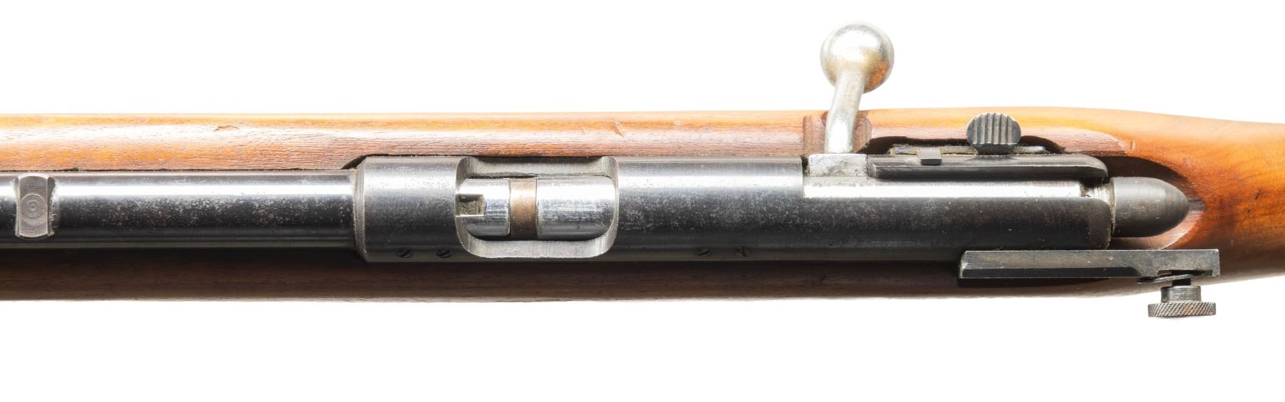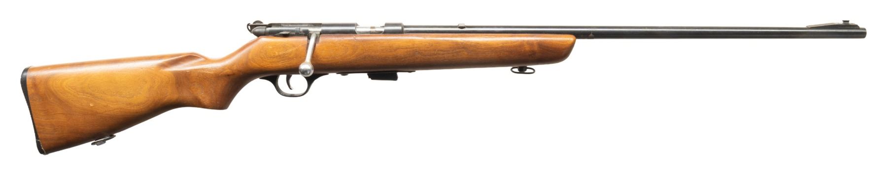 Cal. 22 LR. NSN. Bbl. 24". Bead front sight, filler in rear dovetail & receiver base for sight; D&T for left side scope mount. Mag. floorplate has hand electro-penciled 9 digit #. Hardwood stock. MAGS: 3 - 10 rd. CONDITION: very good blue & wood finish with handling marks & scratches. Very good rifling. (25-5357/MD). CURIO. $100-200.