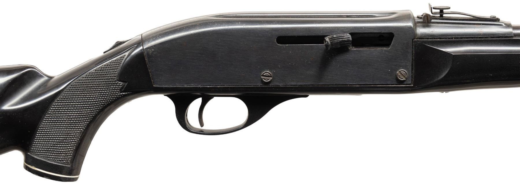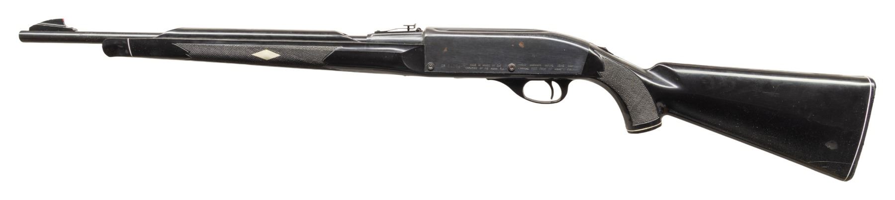 2) CBC NYLON 66 SEMI AUTO. Cal. 22 LR. S# GR64064. Licensed clone of the Remington Nylon 66 w/ 19.5" bbl. & black Zytel stock. CONDITION: good blue with peppery oxidation throughout. Front sight has added orange paint. Very good stock appearance. PROVENANCE: From the PMRB Collection. (25-5939/MD). ALL MODERN. $400-600.