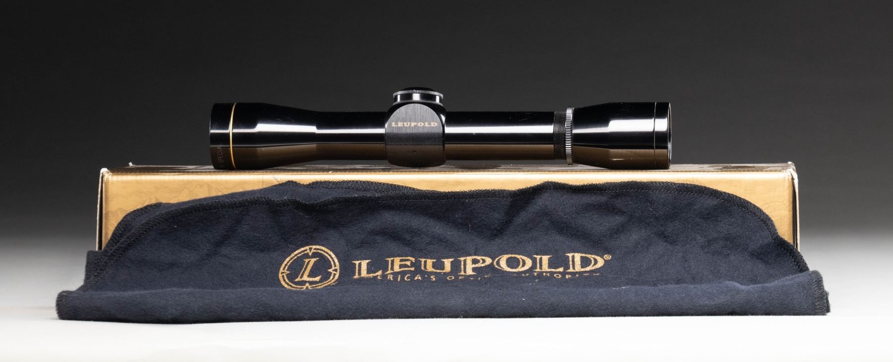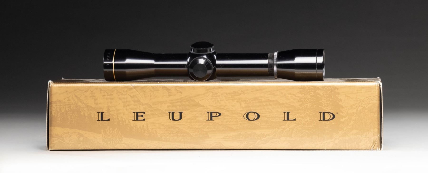 MATCHING FACTORY BOX. M8 4x Compact RF Special (Item #: 41129) rifle scope mfg. by Leupold. Glossy exterior finish with Duplex reticle. UNATTACHED ACCESSORIES: factory box containing factory paperwork. CONDITION: very good, with some light edge wear and superficial marks from handling and storage. Scope retains a clear and sharp optic. Box shows some light exterior wear, but otherwise remains sound. (02-25961/MLW). NON-GUN. $150-200.