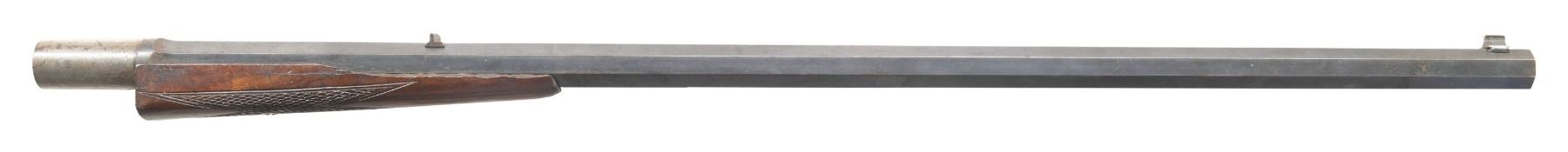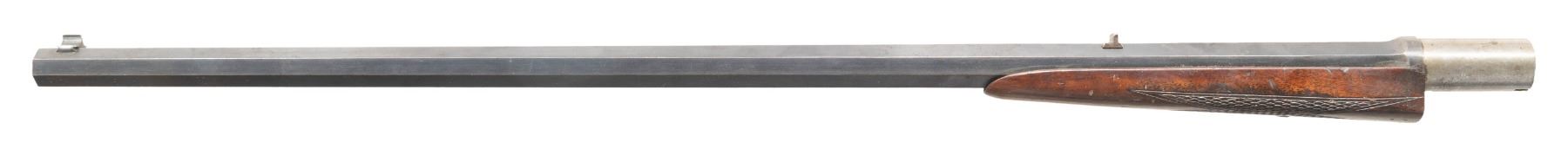Cal. 22 RF. S# 100. Oct. 28" barrel. Lyman bead front sight & notch rear sight. Checkered walnut forearm. CONDITION: good fading blue with peppery oxidation & scattered marks. Forearm has good finish with dings & marks. Fair rifling with pitting. PROVENANCE: Estate of Groves Herrick. (02-25411/MD). NON-GUN. $50-100.