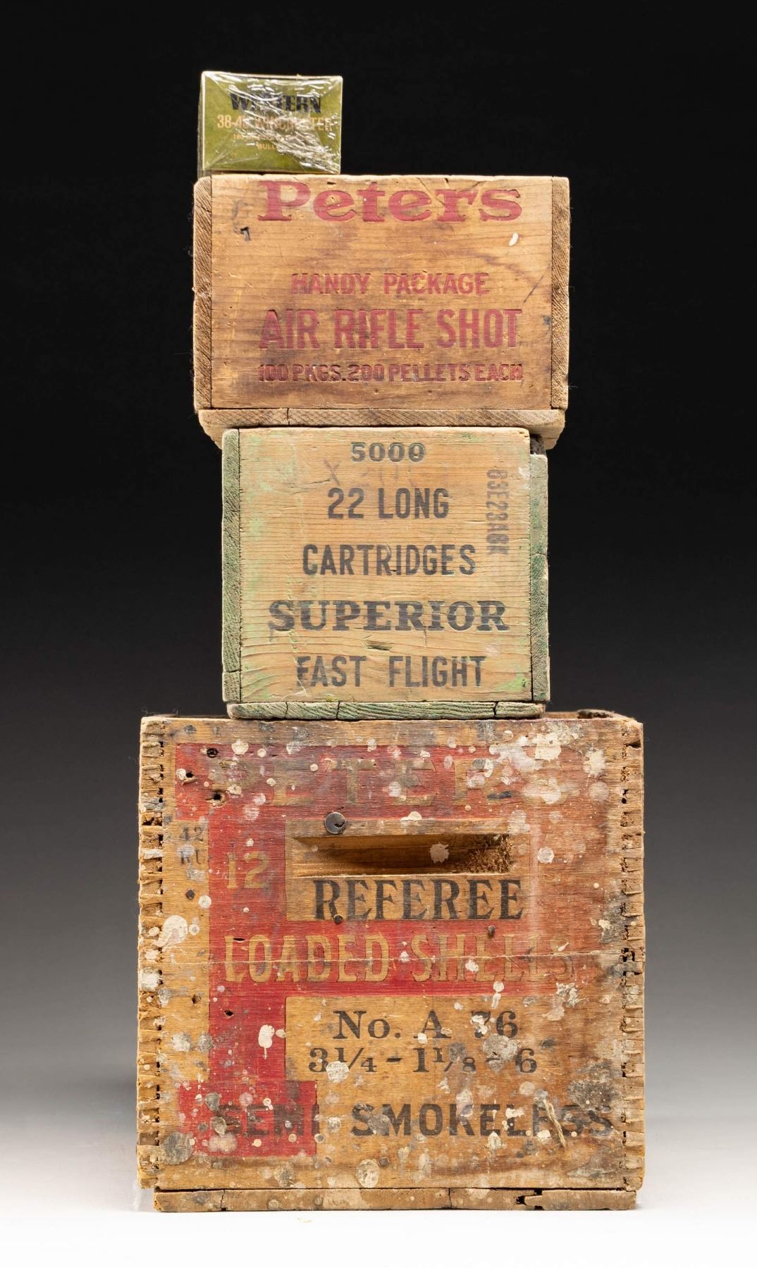 Lot 2580 3 AMMO CRATES & EMPTY ERROR WESTERN AMMO BOX.