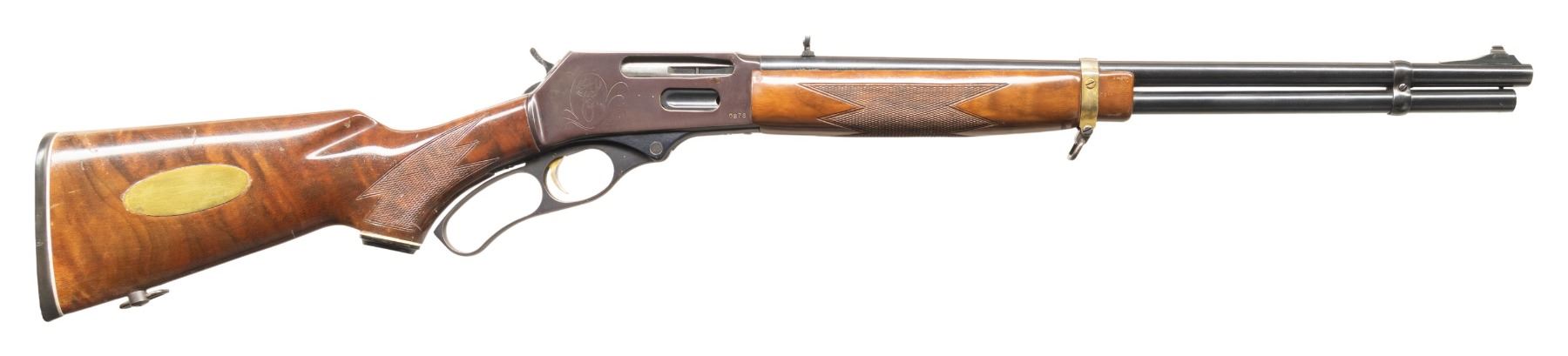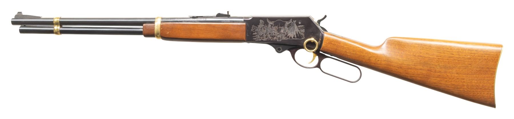 1) WESTERN FIELD MODEL 72 CENTURY 2. S# 0876. Bbl. 20". Sporting sights. Tubular mag. Walnut stock set w/ sling swivels, gold plated small parts & plaque on right side buttstock. CONDITION: very good overall appearance with handling mark & receiver having a plum hue. (25-5817/MD).