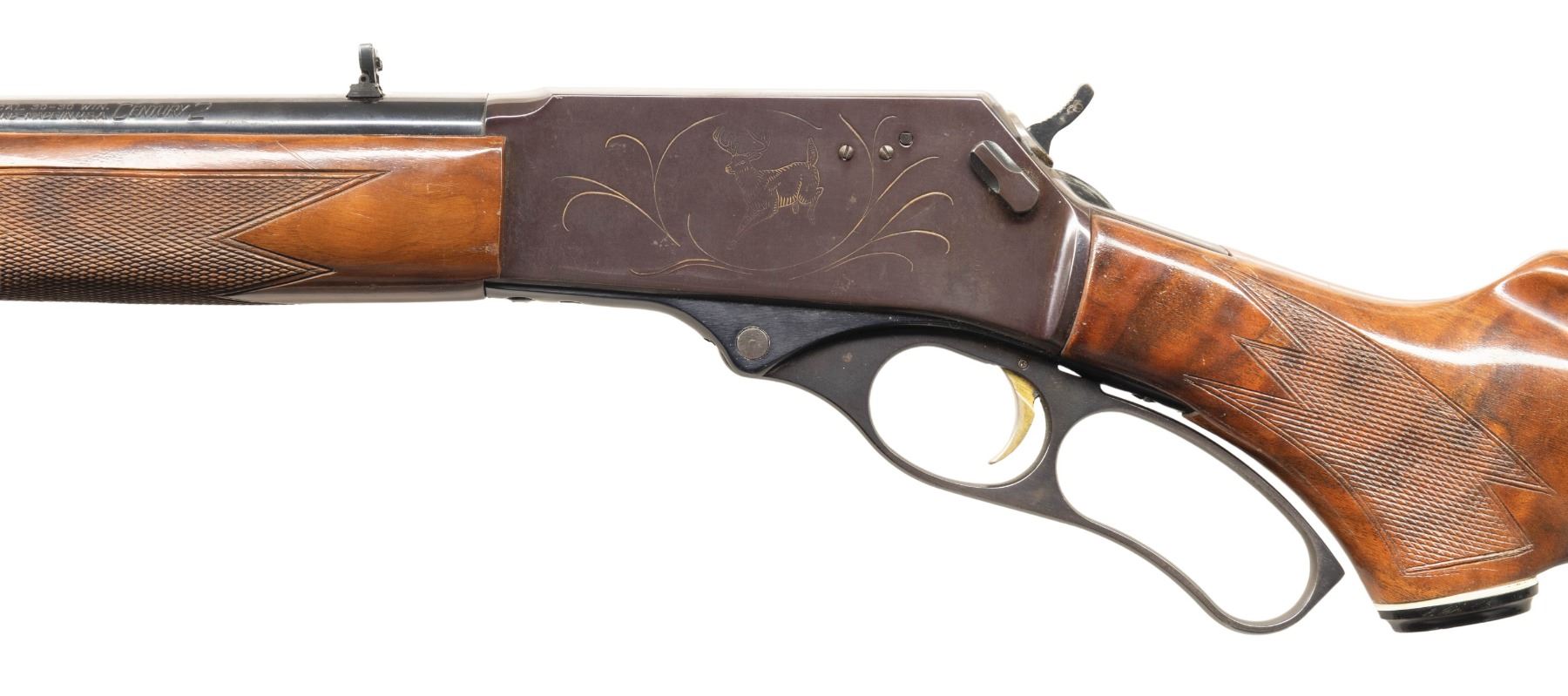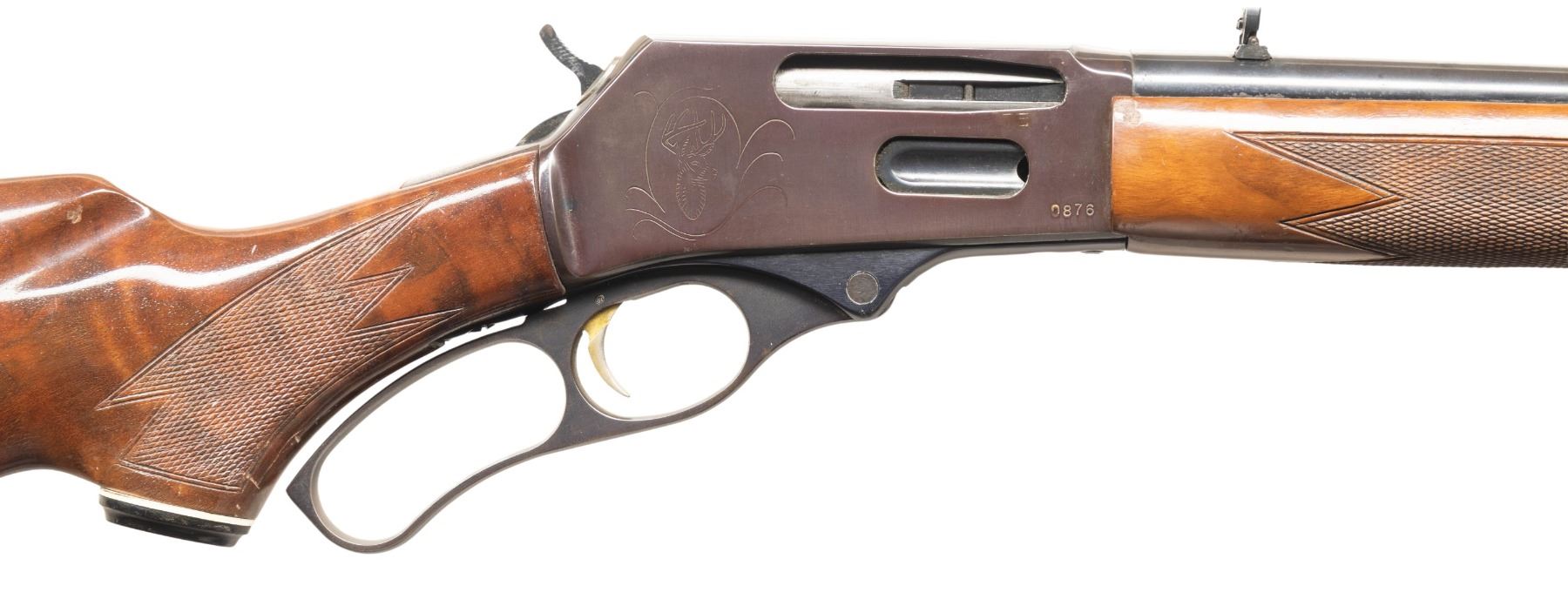 2) MOSSBERG 472 SBAS. S# S0363. Bbl. 18". Sporting sights. D&T engraved receiver w/ gold plated saddle ring. Tubular mag. Walnut stock set w/ gold plated parts. CONDITION: near excellent overall showing light handling marks & strong rifling. PROVENANCE: From the PMRB Collection. (25-5832/MD). ALL MODERN. $600-800.