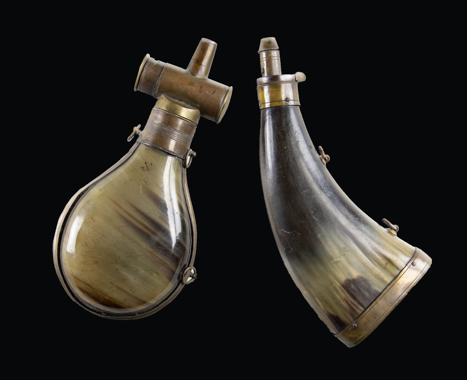 Lot 3460 LOT OF TWO BRITISH POWDER FLASKS.