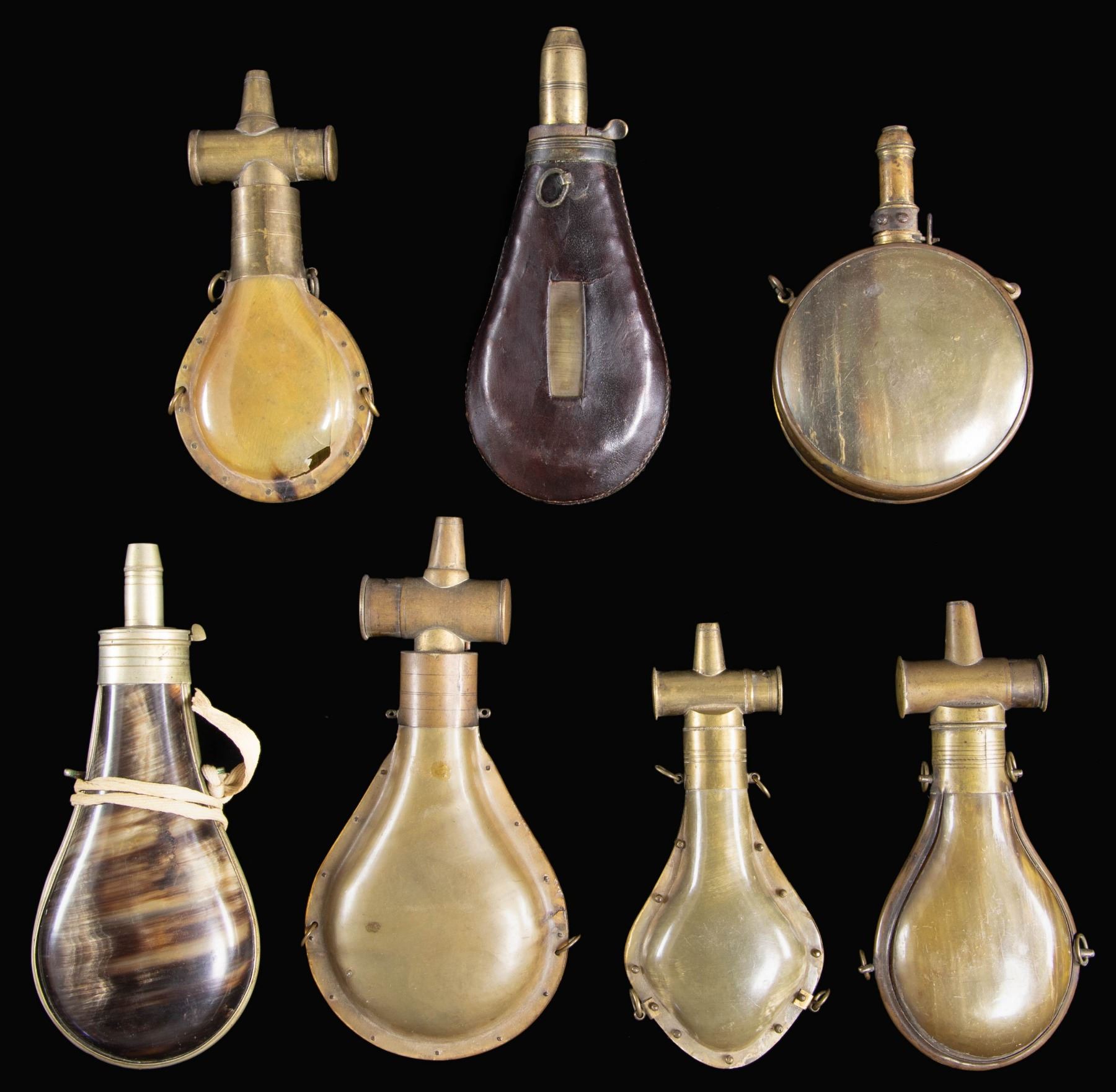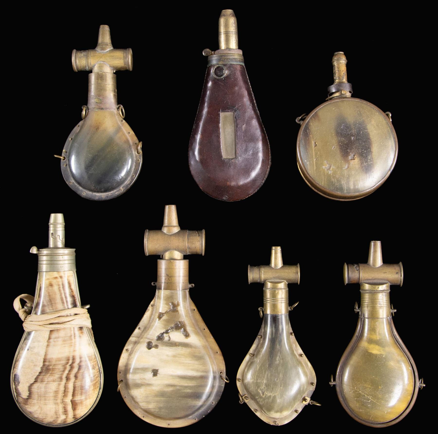 Lot 3480 SEVEN SCARCE BRASS BOUND EARLY HORN POWDER