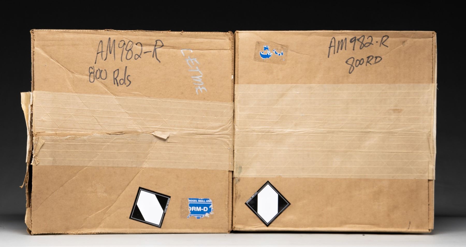 1600 rds. of Spanish 7.62 NATO surplus ammo in 20 rd. boxes. Ammo appears to be 1960's dated. CONDITION: boxes show varying degrees of wear with some being opened. Ammo may show tarnishing & oxidation. (02-25027-7/MJC). $700-1,000 for lot.