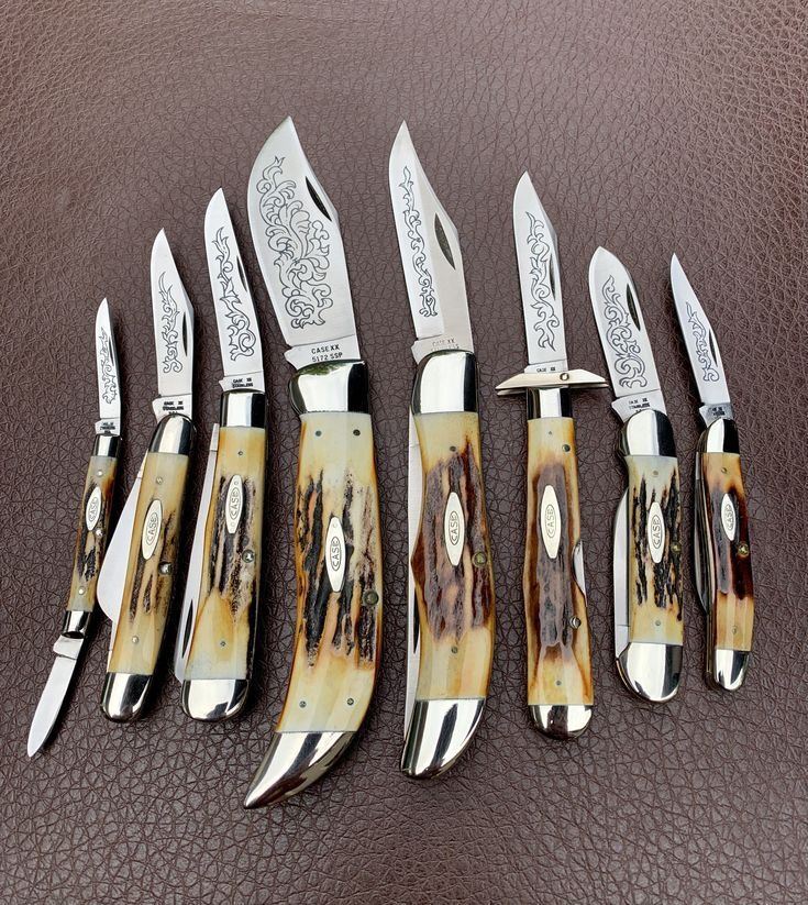 This 1977 Case XX Blue Scroll Stag Pocket Knife Set is an extraordinary collector's treasure. Featuring hand-crafted blades adorned with intricate scroll engraving and stunning stag handles. An exceptionally rare and valuable set that represents the pinnacle of American knife-making artistry. This item was generously donated by Smoky Mountain Knife Works.