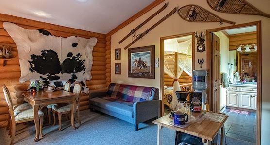 INCLUDES: - 3 nights in a 1br cabin with private hot tub - Up to 2 adults + 2 children (12 y.o. or under) - Ranch activities: axe throwing, cow milking, cheese making, group bonfires, hiking, mountain biking, archery, snow shoeing, cross county skiiing - Breakfast each day - 1 hr Horseback Riding Lesson per person - 1 hr Guided Horseback Riding Experience per person - Additional nights and cabins and premium dates available for purchase upon redemption Each cabin comes with its own Vermont cast iron gas fireplace, en suite, and kitchenette. Just imagine, after a hard day on the trail, coming ìhomeî to enjoy a soothing soak in your own private hot tub, grilling up your dinner on your own barbecue then sitting back and enjoying an evening sunset and just staring up at a star filled sky from the comfy chairs on your own deck.