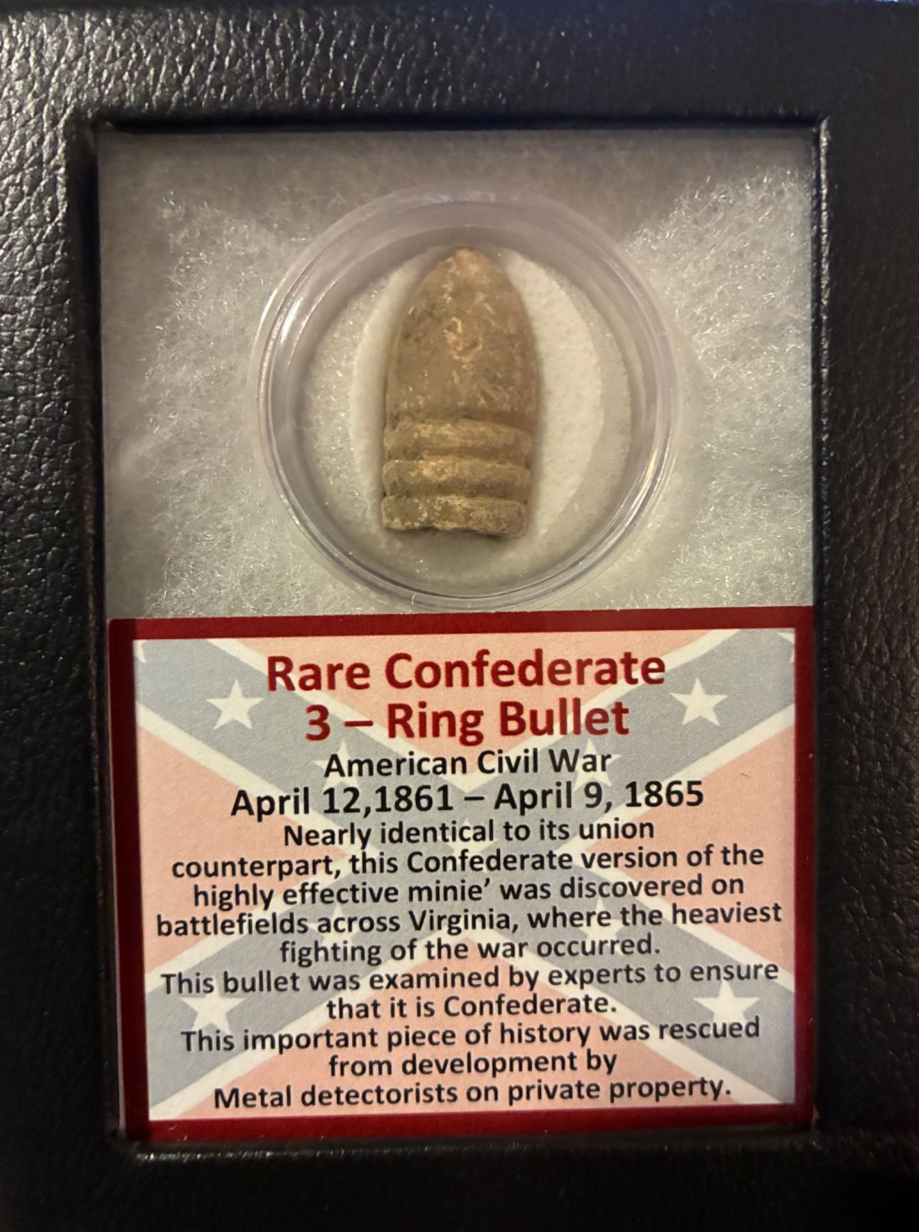 An exceptionally rare Confederate 3-Ring bullet from the American Civil War, prized by serious collectors for its distinctive design and historical significance. A remarkable piece of battlefield history that represents the ingenuity and resourcefulness of Confederate armorers. This item was generoulsy doanted by Smoky Mountan Knife Works.†