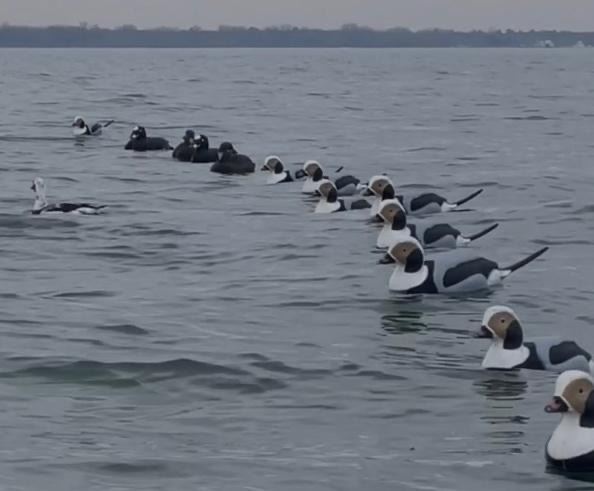 He hunts from several ports in Northern Indiana, location depends on time of year and where ducks are. Hunting is from a Bankes Goliath 21.5 ft. seaworthy duck boat. Outfitter targets diving ducks, Old Squaw, Blue Bills, Goldeneye, Buffleheads, Redheads, and the king of ducks Canvasbacks. Possibility of Harlequins, Eiders, and Scooters as well as the occasional mallard.