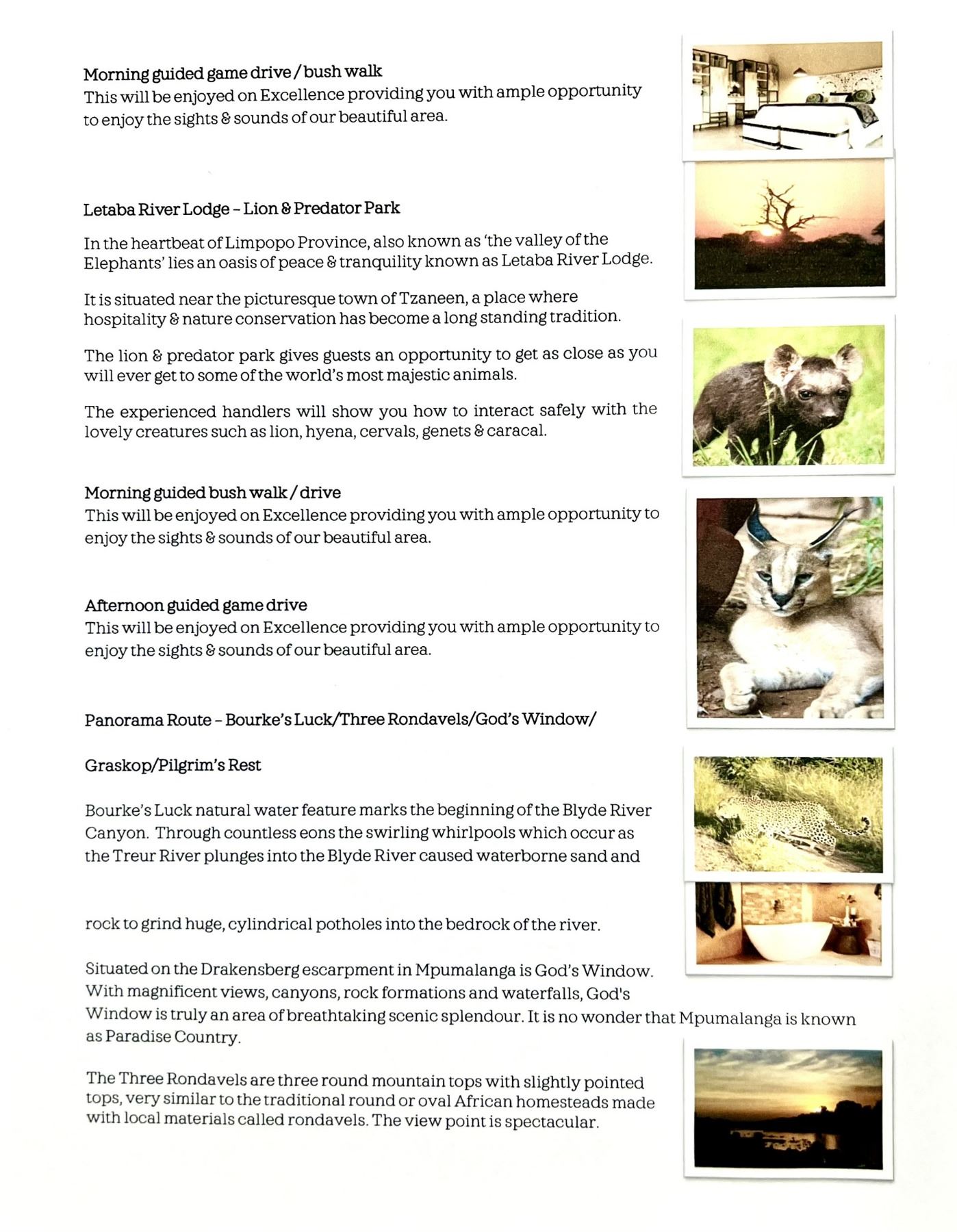 This is a first-class 7-day photo safari for two people in the Limpopo Province of South Africa, with an option to add hunting!