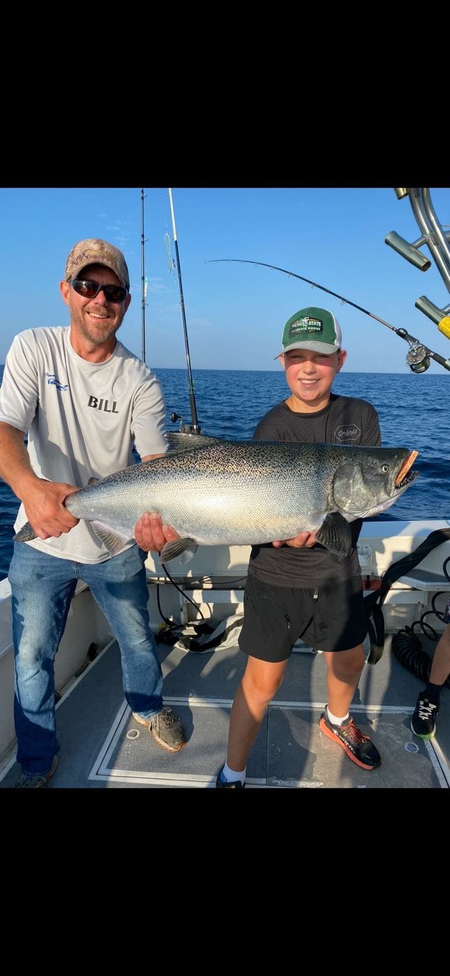 You will be fishing on board "The Reel Ginger." This 30-foot power boat is equipped with the most up-to-date electronics and fishing equipment. Starting point is Yatch Basin Marina in Holland, Michigan. Your day starts at dawn, and you will fish until early afternoon. All rods, reels, and tackle are provided. A Michigan fishing license which can be purchased online or at a local fishing and sporting goods store is required before you take the charter. Make sure to bring a cooler with you with your favorite snack and drink to keep you nourished while you reel in your fish. You can use the cooler to bring home your catch too! The fish will be cleaned for you at the dock. Your trip is to be scheduled on open dates April through August of 2026 on a date which you can coordinate with Powderhorn Sportfishing. Captain Tim Becker has over 25 years of fishing experience on Lake Michigan, and he works hard for your fishing success. This is a great day of fishing! Just as one of the dozens of our chapter members who have fished with Captain Tim.