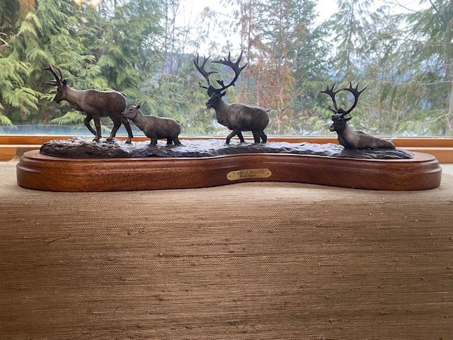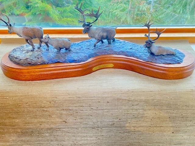It depicts a group of caribou which have just successfully crossed a river and are emerging, A sight familiar to everyone!!