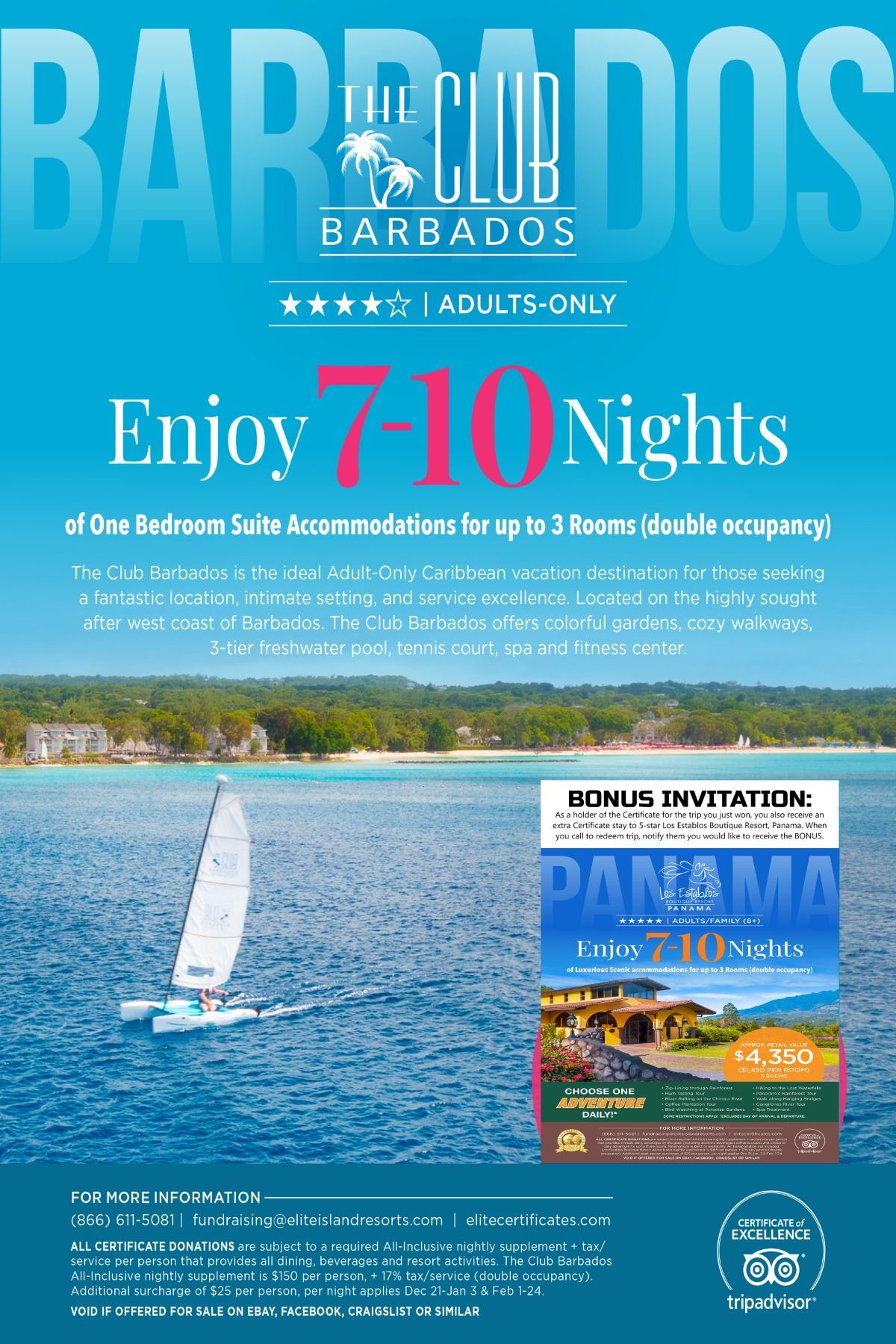 room depending on dates of travel) at The Club Barbados. All reservations are