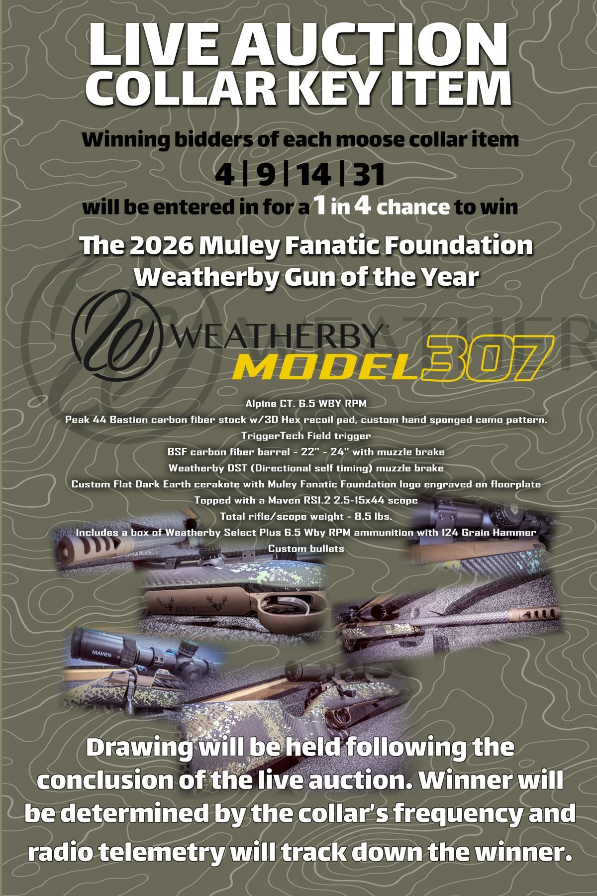 Winning bidder will have a 1-4 chance to win the Weatherby 2026 MFF Gun of the Year