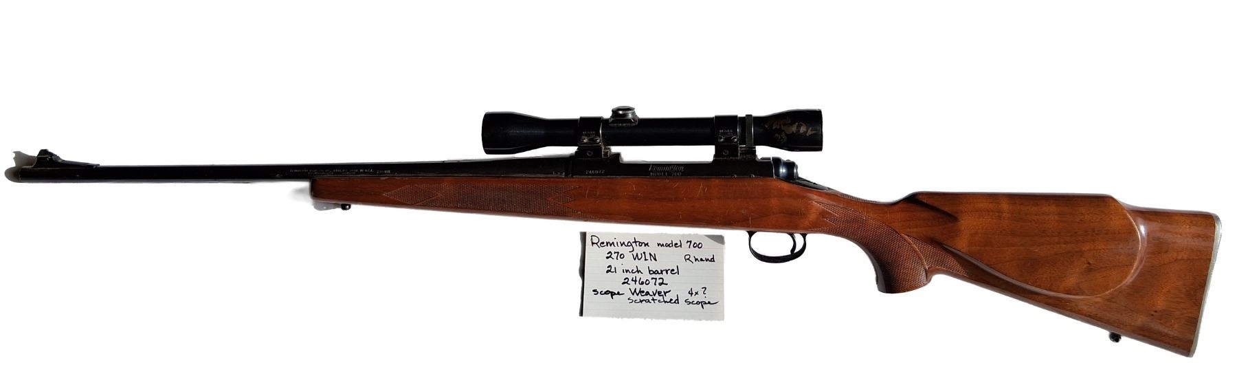#6 Lot 6 Remington Model 700 in 270WIN. Right Hand. Weaver 4X Variable Scope SN:246072