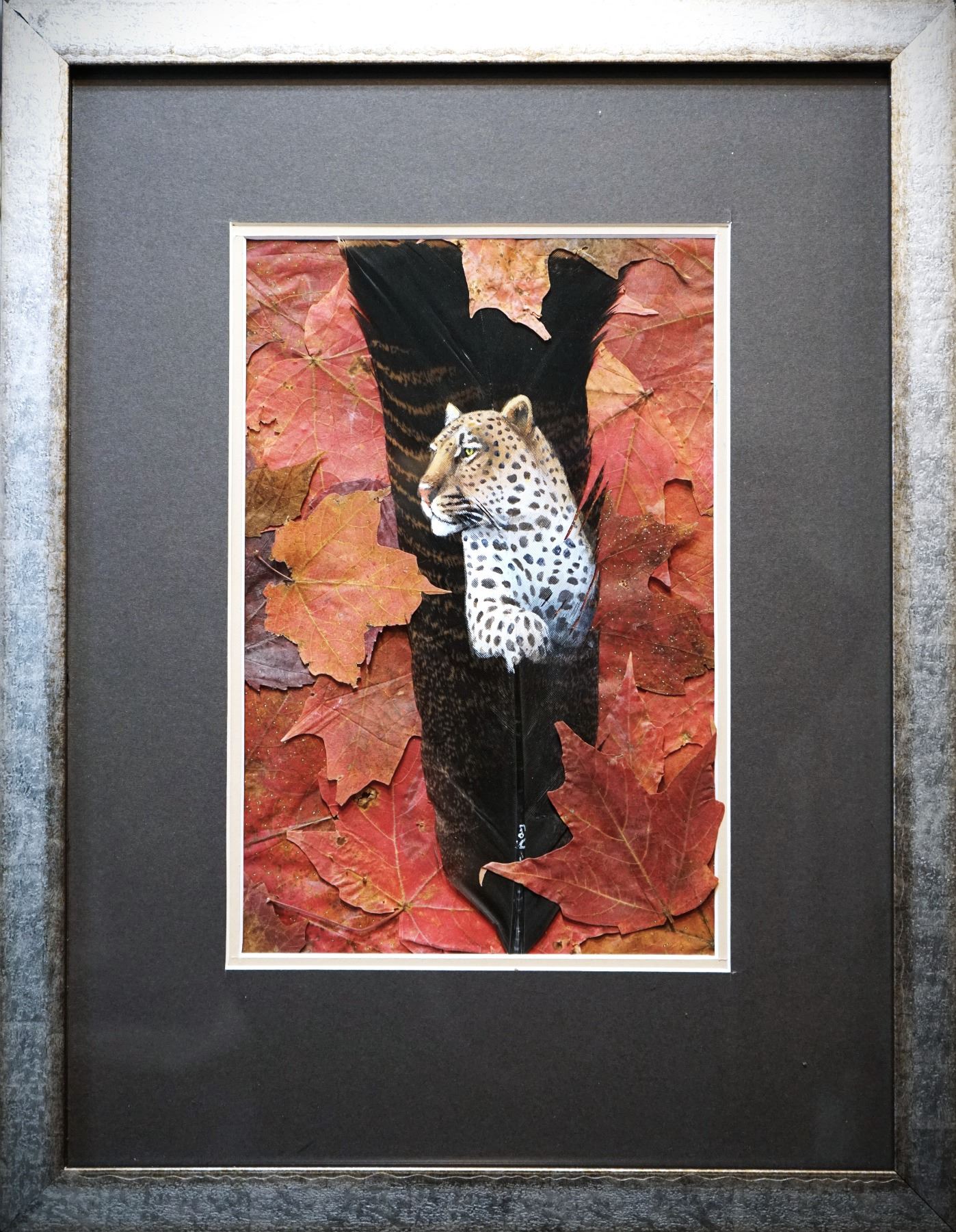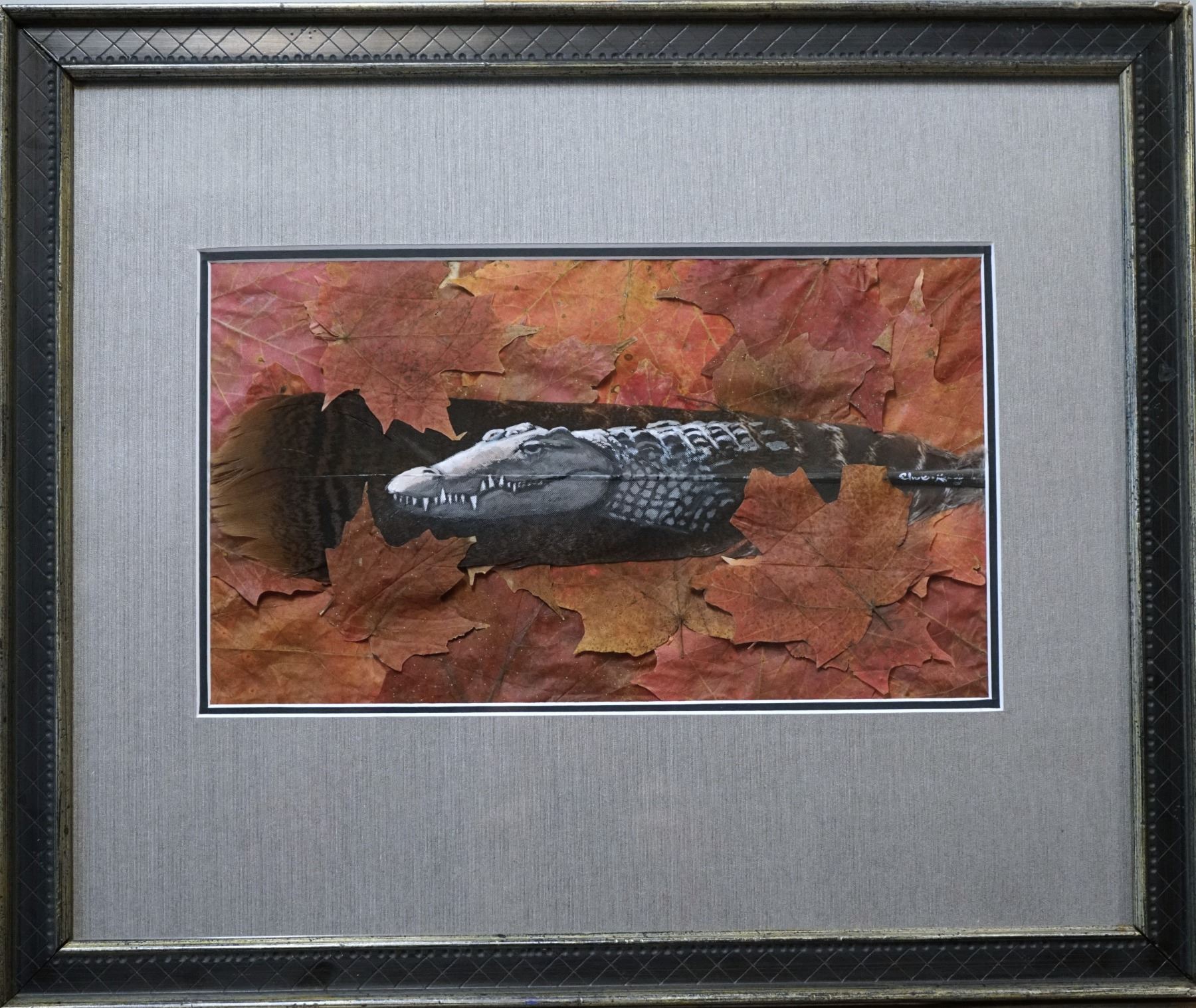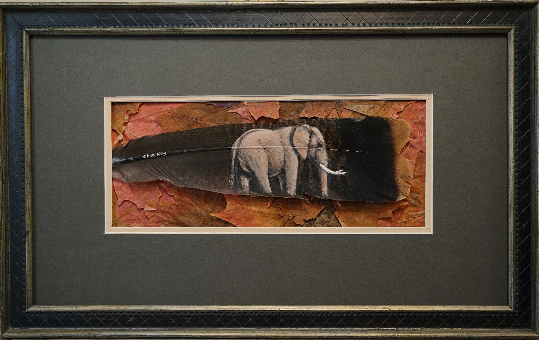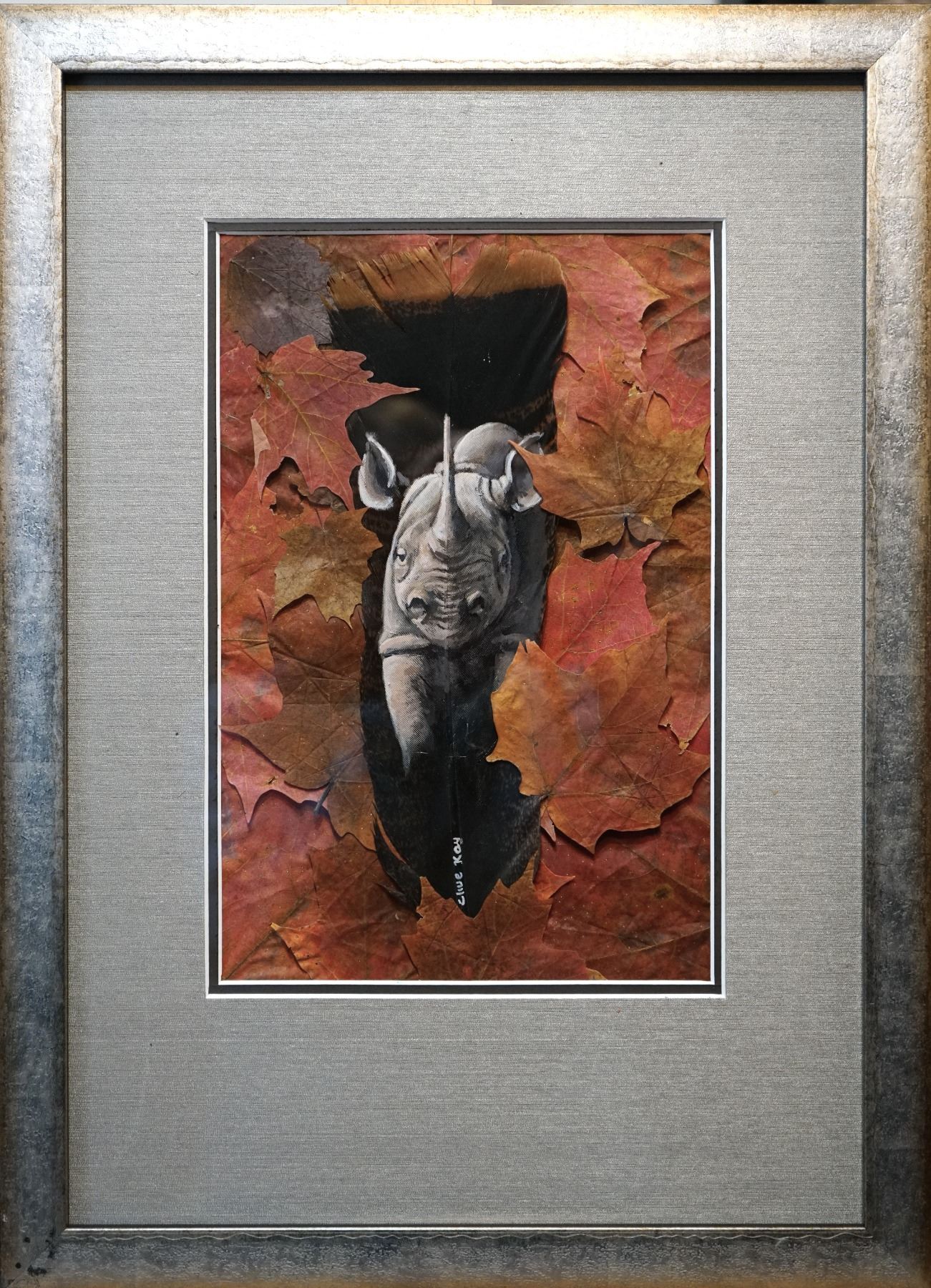 Clive Kay, an extraordinary artist has painted all his life, growing up in Rhodesia now Zimbabwe and he’s been living in Canada for quite some time. These are original pieces, painted on Eastern Wild Turkey feathers, framed with Maple Leaves around the feathers. Framed size 14” x 16.5” Leopard, Cape Buffalo, Hippo and Crocodile. The DANGEROUS 7 OF AFRICA., The ORIGINALS are of Elephant, Lion, Black Rhino, Leopard, Buffalo, Hippo and Crocodile.