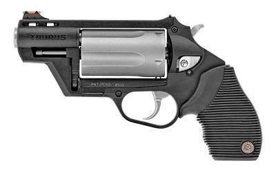 Taurus USA, Judge, Public Defender, Double Action, Polymer Frame Revolver, Medium Frame, 45 Colt/410 Bore, 2.5" Barrel, 2.5" Chamber, Matte Finish, Silver Cylinder, Black Frame, Rubber Grips, Fixed Sight, 5 Rounds