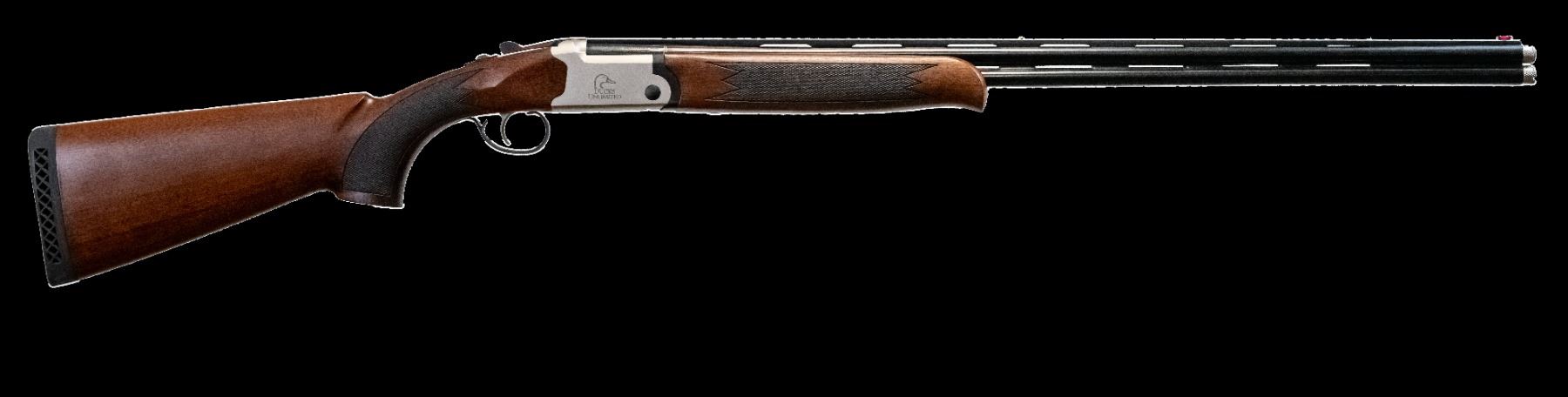 This .410 gauge shotgun features a 28-inch barrel along with a beautifully crafted wood stock and forend. The receiver is both engraved and nickel-plated, adorned with distinctive DU embellishments that add a touch of elegance.