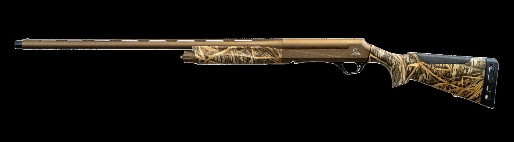 Discover the DU exclusive Retay ACE-R that features a striking Mossey Oak Original Shadow Grass pattern complemented by a Burnt Bronze Cerakote finish. It comes equipped with a smoked grey recoil pad window, a 12-gauge chamber, and a 28-inch barrel. Additionally, the choke tubes showcase distinctive DU accents, while the charging handle proudly displays the DU logo.