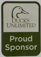 Cream and green sign made of sturdy 1mm thick metal. Ducks Unlimited logo in green with “Proud Sponsor” in cream. Perfect to hang anywhere with holes located in top and bottom. Measures 11 3/4” x 8 3/8”.