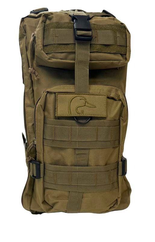 11-liter backpack constructed in a heavy-duty nylon material. Includes a velcro patch with the duckhead embroidered in a coordinating color. Features a large interior compartment with two exterior pockets. Padded back and adjustable shoulder straps. Measures 16" x 9" x 4".