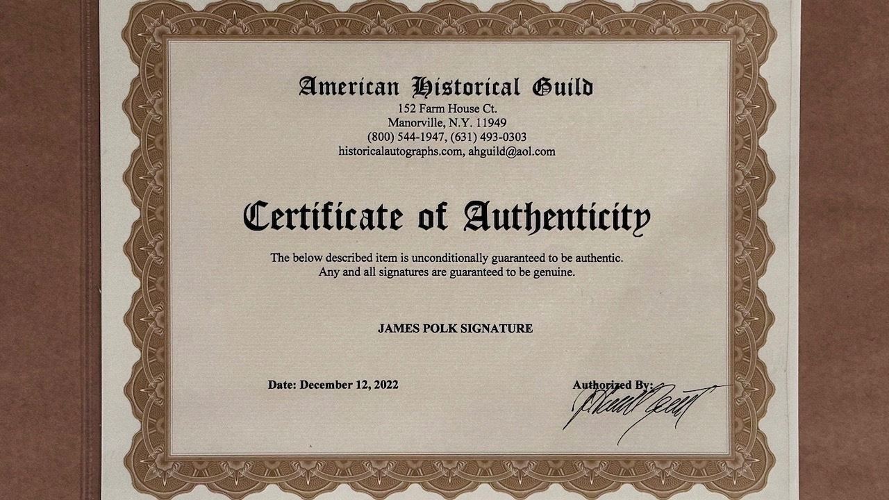 timeless legacy of President Polk. The autograph comes with a certificate of authenticity, further ensuring its