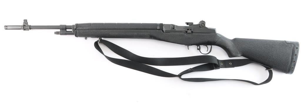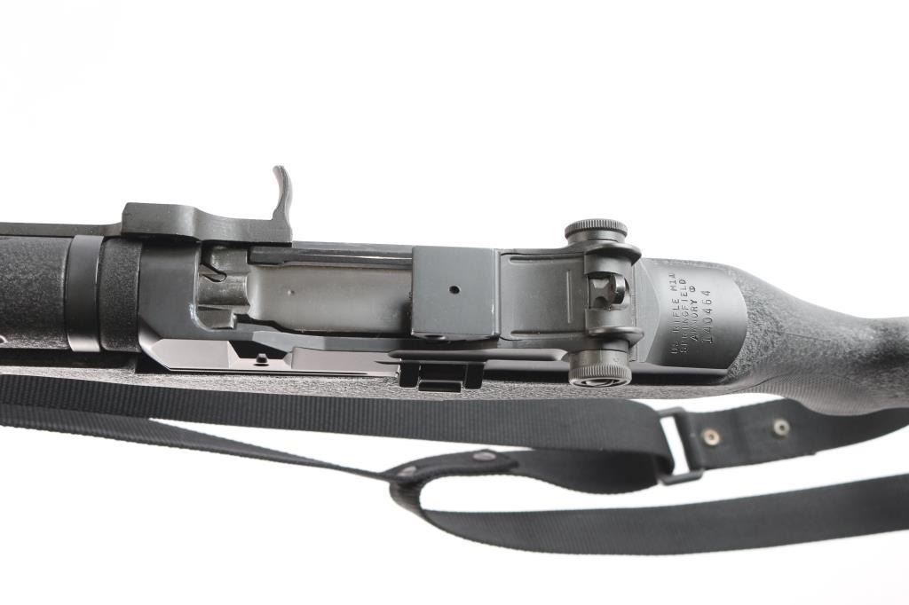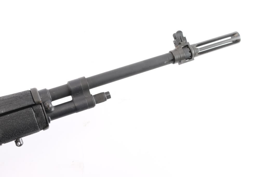 High Quality American made gas operated piston driven semi-automatic rifle chambered for 7.62x51mm. Rifle features a parkerized finish, a 22" barrel, 3" slotted flash hider, blade front sight with protective ears, adjustable aperture rear sight, optic mounting block installed in rear sight dovetail, smooth curved trigger, manual blade safety at front of the trigger guard, SA bolt, paddle magazine release, and accepts detachable magazines (none provided). The black composite furniture consists of a semi-pistol gripped shoulder stock with checkering at the wrist, black composite hand guard, sling swivels on the forend and shoulder stock, sling stud on the forend, and black serrated solid rubber recoil pad. The original parkerized metal finish retained is approximately 98% with light blemishes, white material transfers on the left side of the receiver and receiver ring, and light edge wear. The metal displays no rust, or metal deformation. Bore is bright with strong rifling, and the composite furniture is in good condition with losses in the magazine well, edge wear, and flattening to some of the checkering. The action is smooth and crisp. This rifle includes black nylon sling.