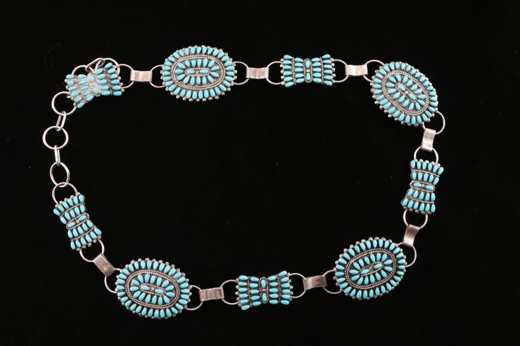 Lot 147 Stunning Zuni Turquoise Cluster Concho Belt.
