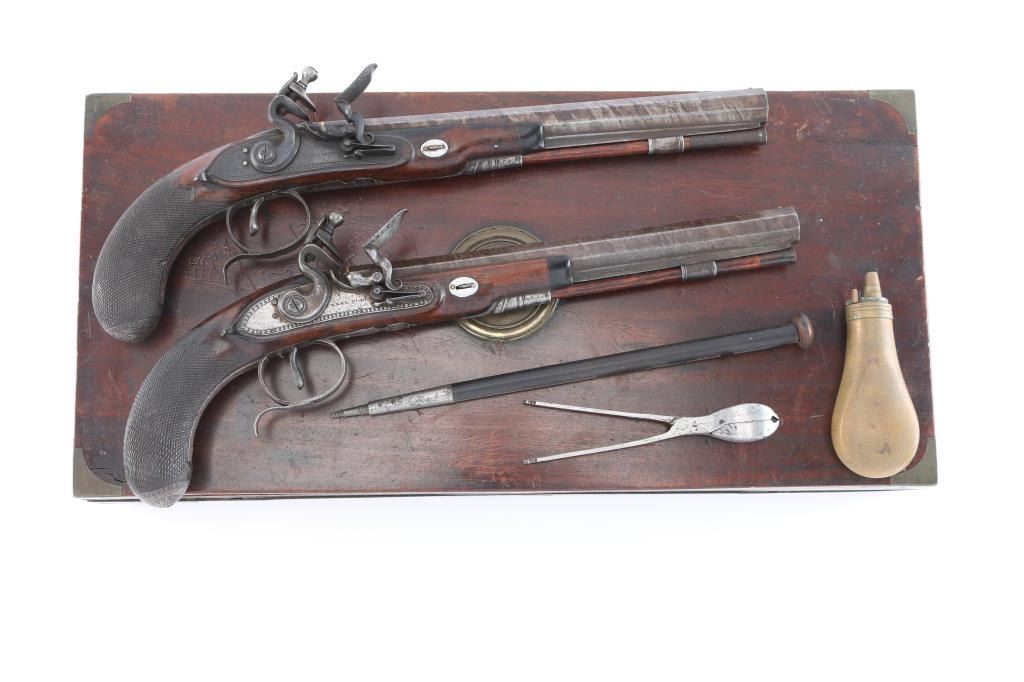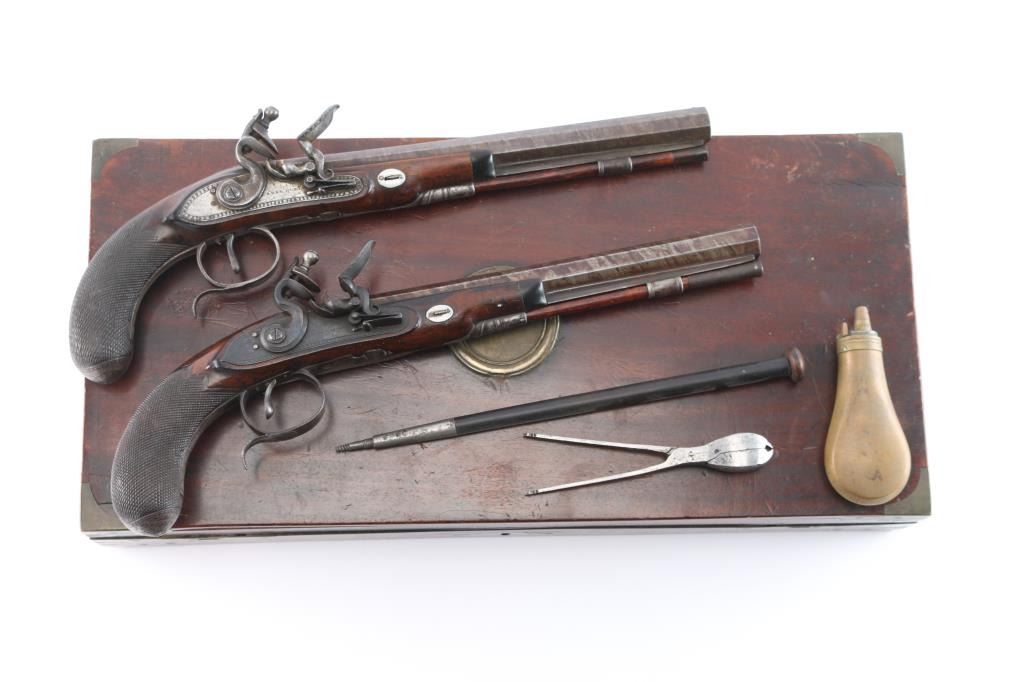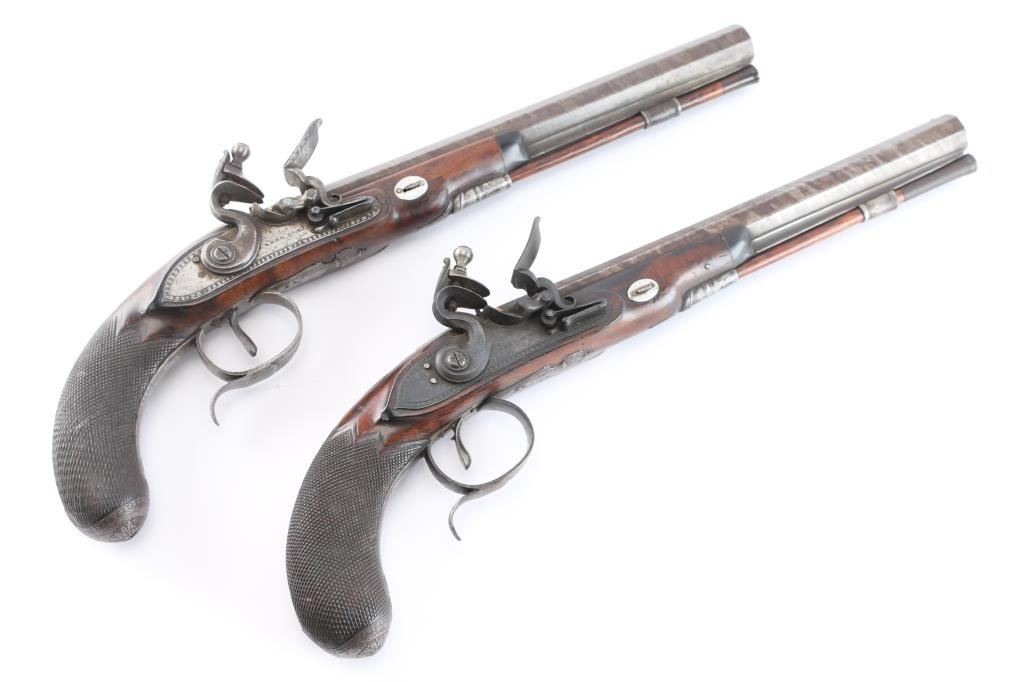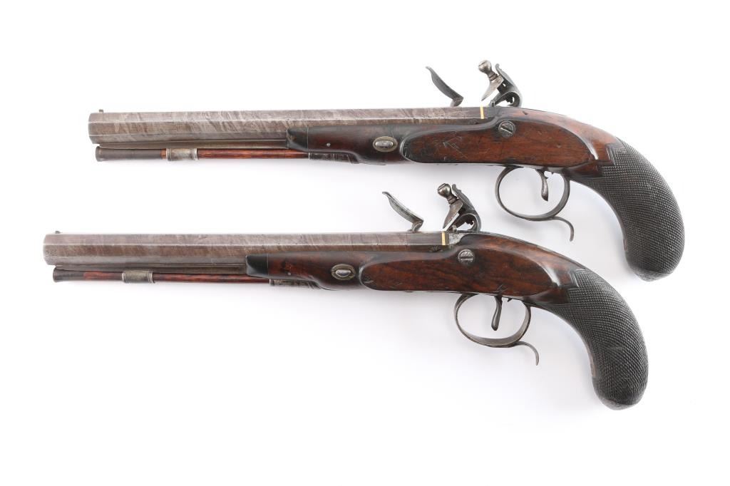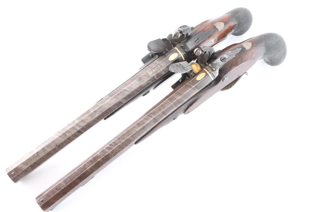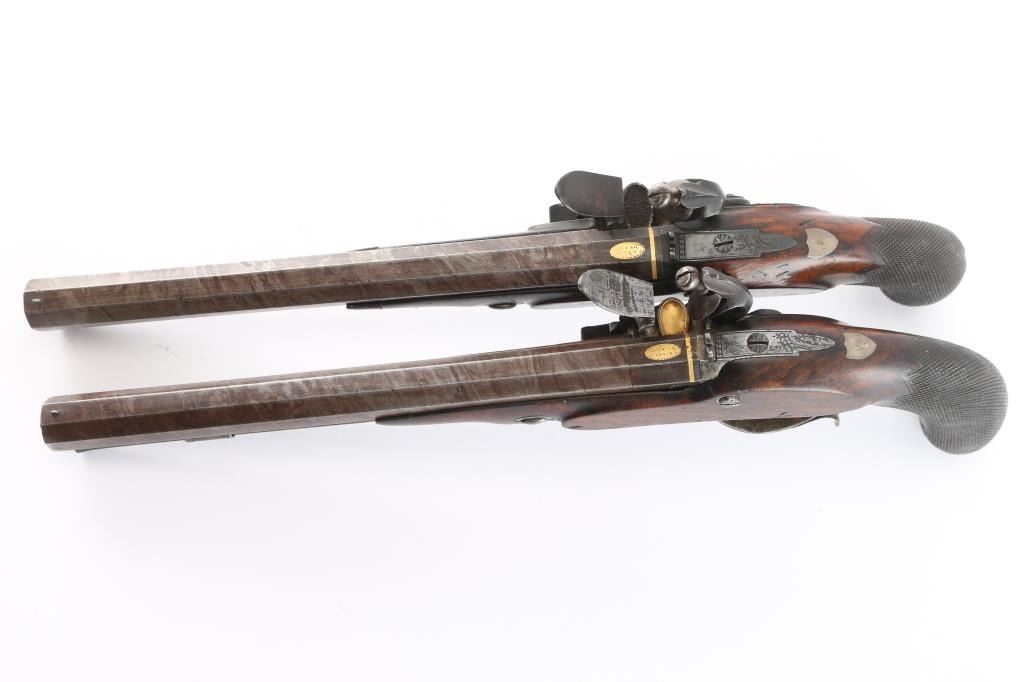 Lot 173 Pair of Original Flintlock Dueling Pistols. 52-54c