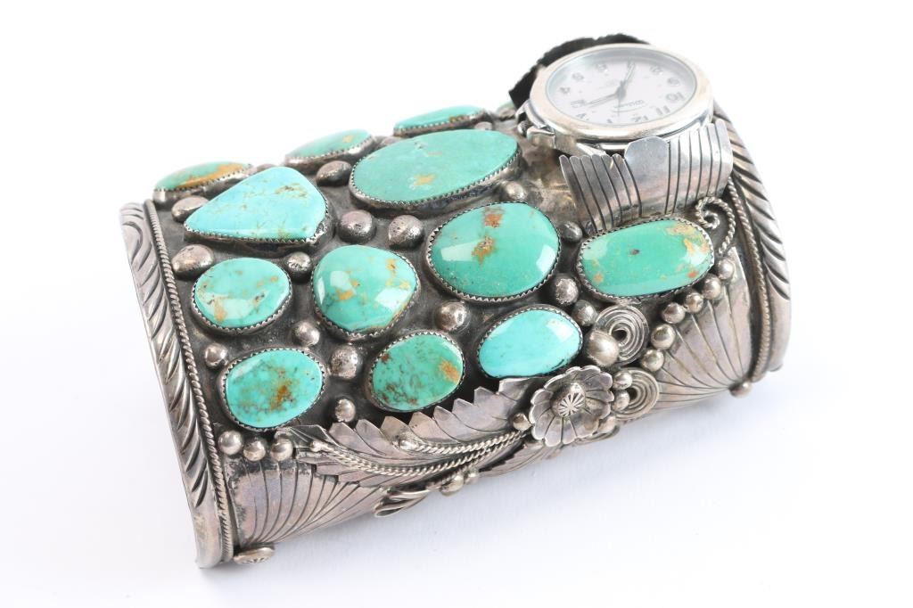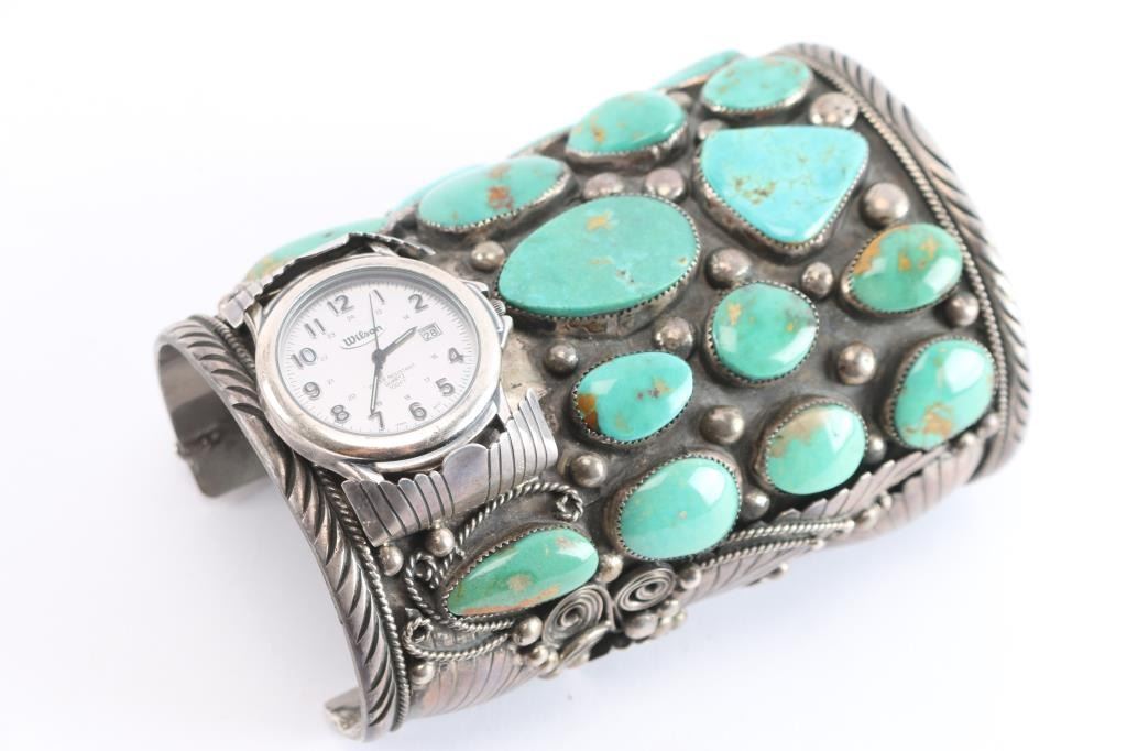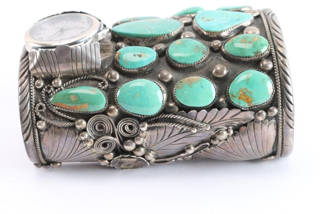 Lot 175 Large Navajo Sterling & Turquoise Watch Cuff.