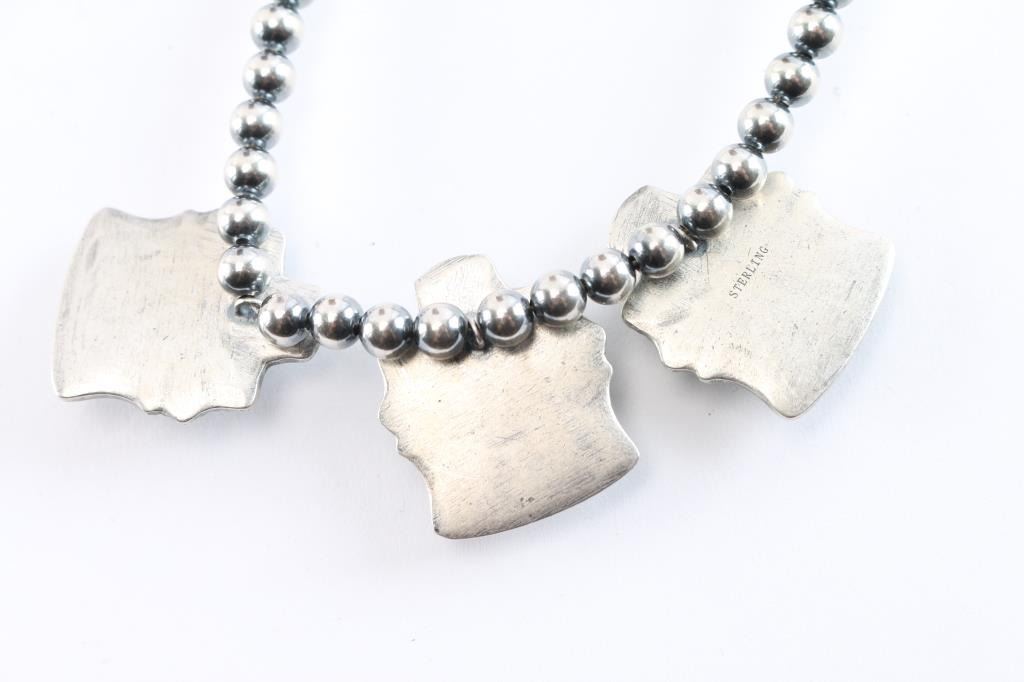 3 Oval Cut Stones Mounted In Sterling On Sterling Beaded necklace.