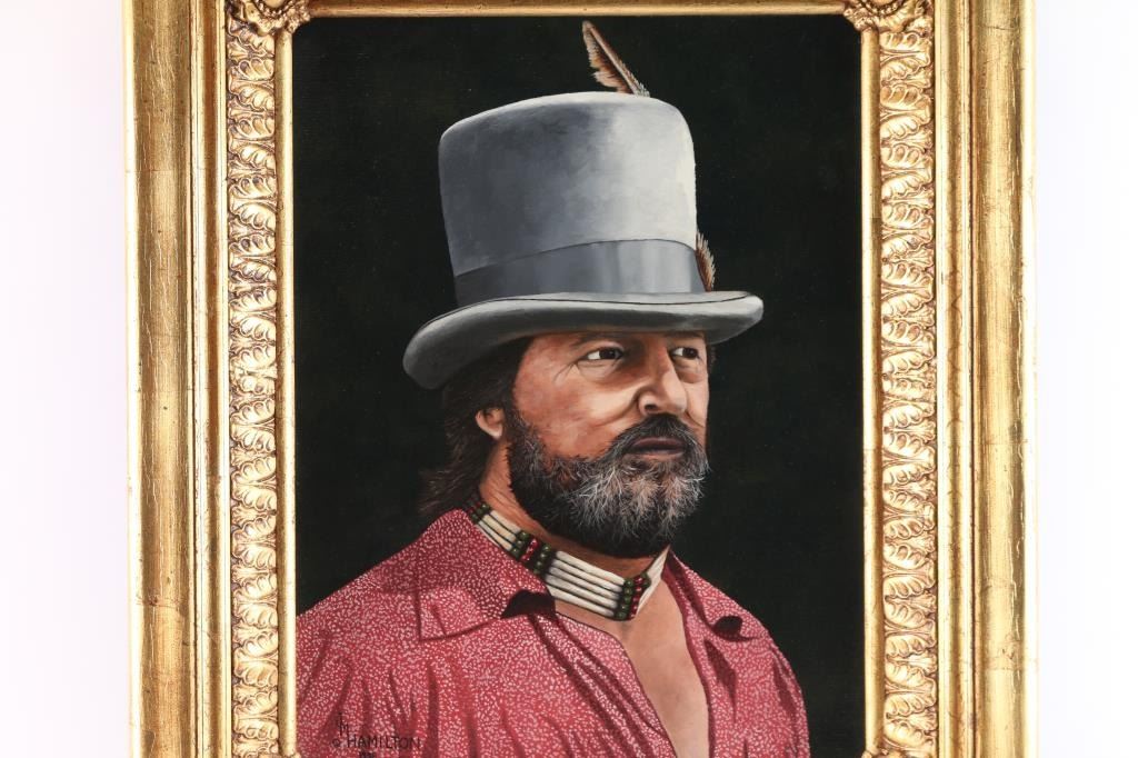 By Colorado artist, Jack M. Hamilton, entitled "New Beaver Hat". Hamilton loved the outdoors, nature's wildlife and American history. He spent years watching, studying and photographing his favorite subjects, often from his working cattle ranch in southern Colorado. Painting on both canvas and panel, Jack worked entirely in the medium of oil. Self-taught, Jack painted in the manner of the old masters. Hamilton was exhibited at many of the country's finest galleries and at many fine art shows. His work has been featured on the cover of, as well as in, national magazines. Measures 19" x 14.5".
