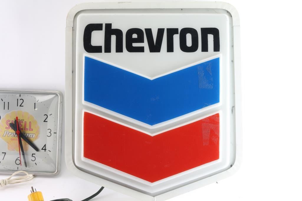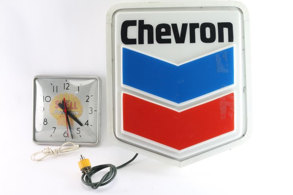 Lot 440a Chevron Lighted Sign & Shell Wall Clock.