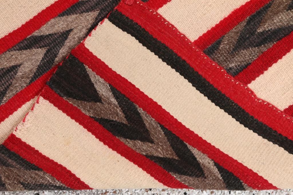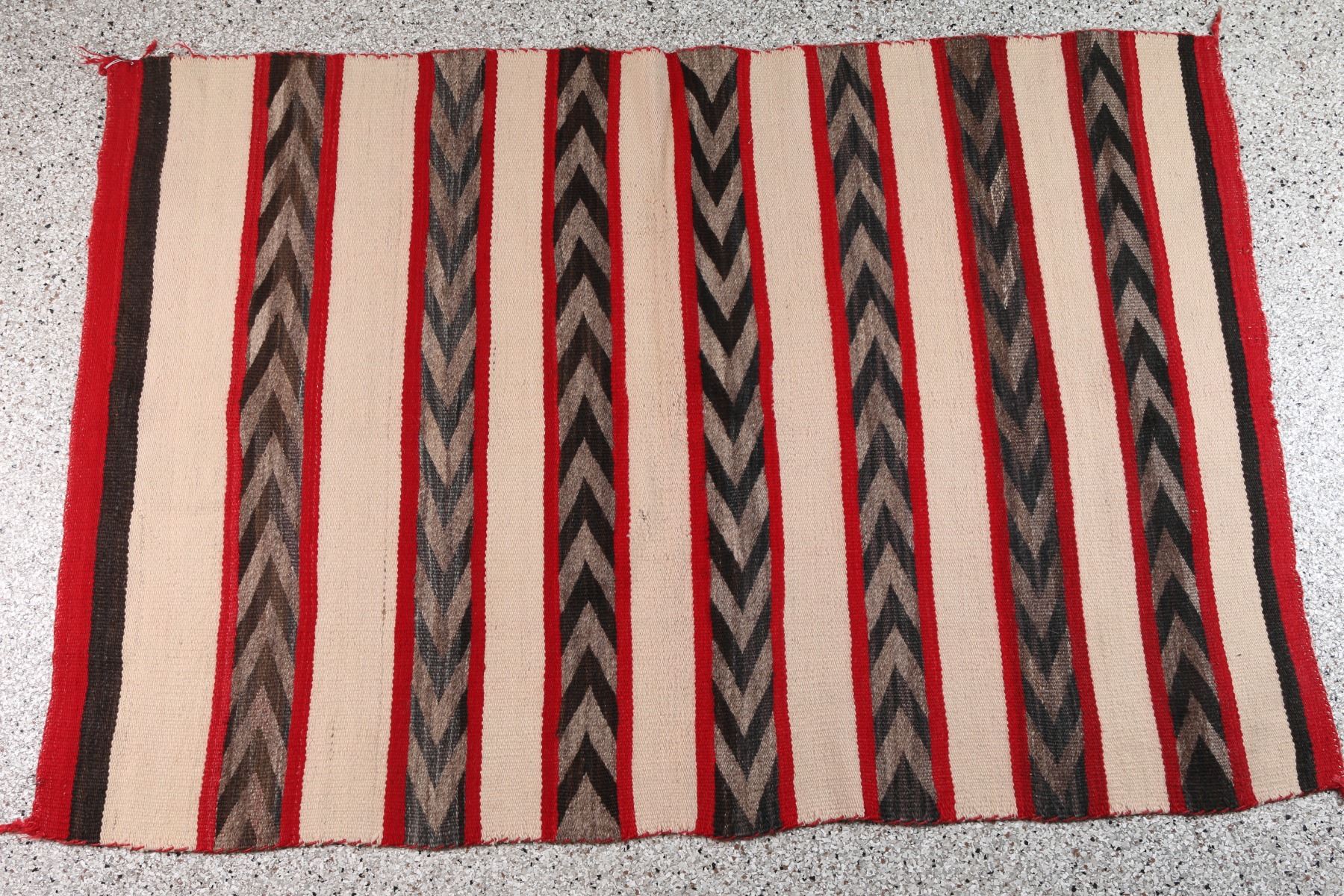 Striped with Chevrons. Measures 60" x 40". Good condition, small minor loss to center.
