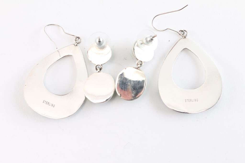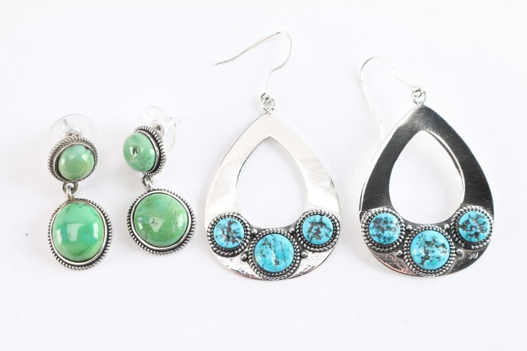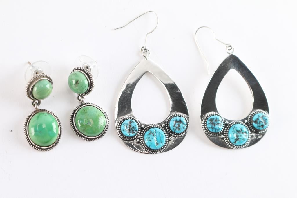 (1) Pair of green turquoise dangling earrings set in sterling; and (1) Pair sterling dangle earrings.