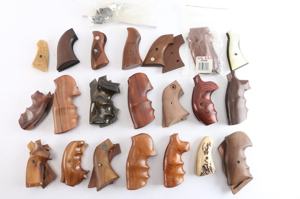 Includes: 21 sets for various handguns, including Ruger and S&W. All in very good condition.