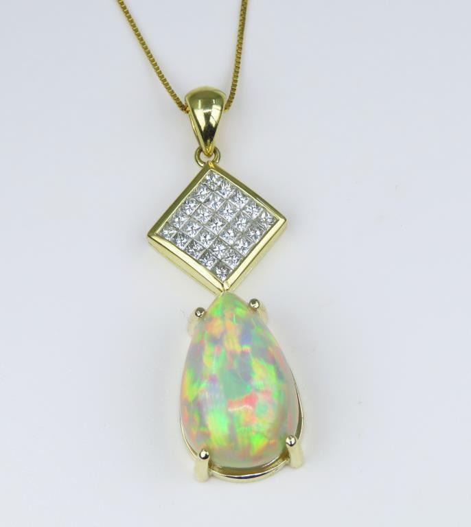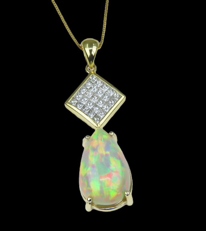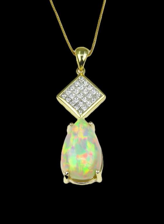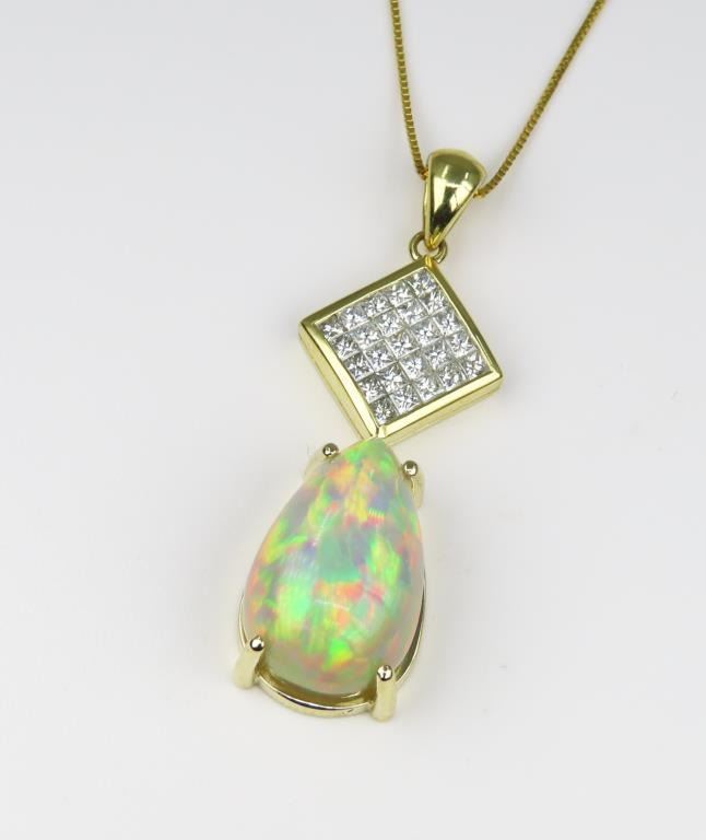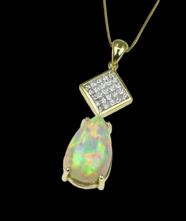 Lot 734 Spectacular Fine Opal and Diamond Pendant