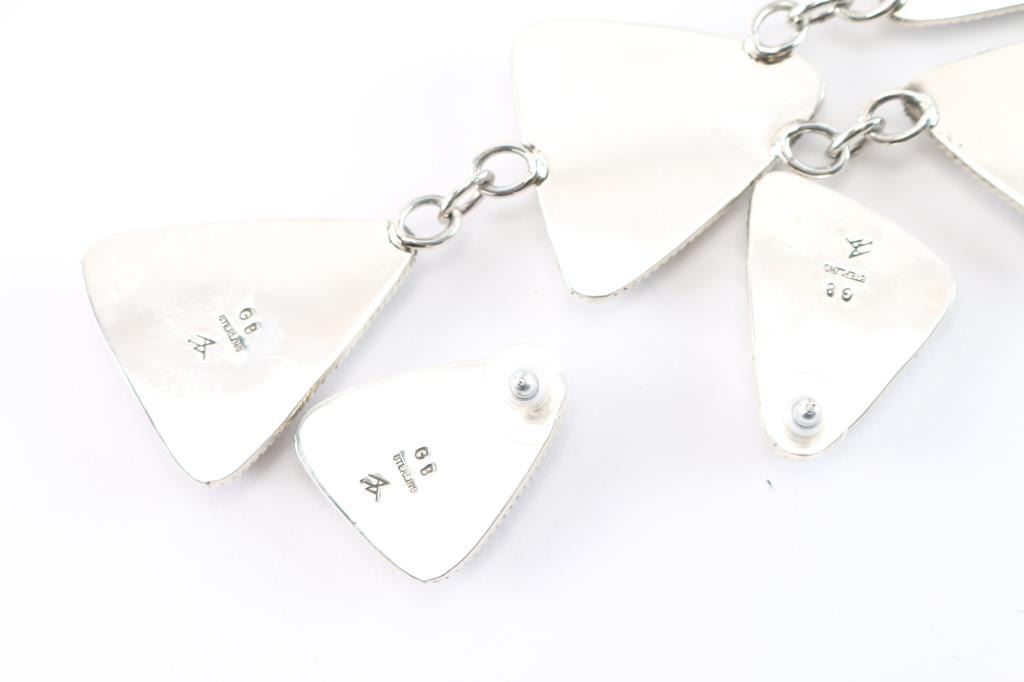 with matching earrings. At 21" long, the necklace link chain provides a comfortable & lightweight wearing experience & can be worn shorter. The post backed earrings are 1-1/2" long. Its stamped Sterling and hallmarked.