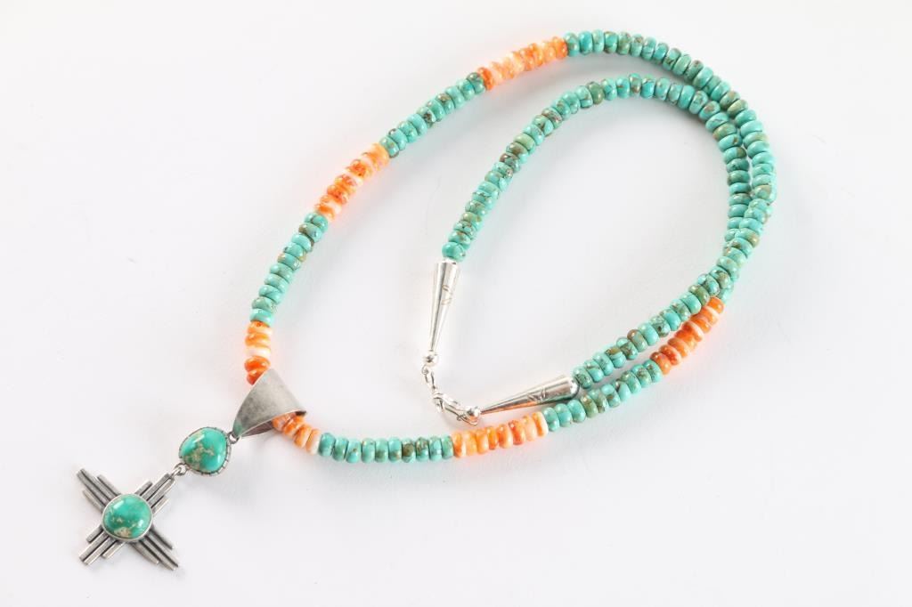 Lot 825a Navajo Turquoise & Coral Necklace.